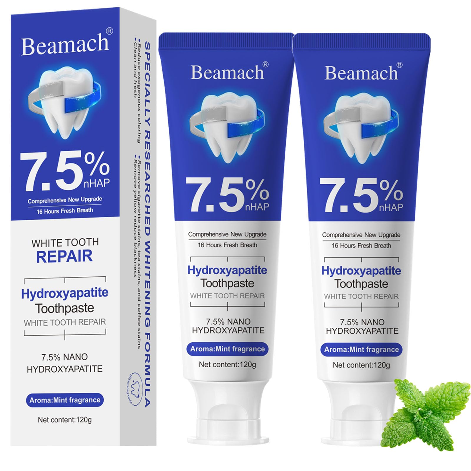 Beamach Hydroxyapatite Toothpaste Nano 7.5% Hydroxyapatite Toothpaste Whitening Tooth Repair Protects Enamel and Strengthens Teeth Fluoride-Free Gentle Mint Fresh Breath