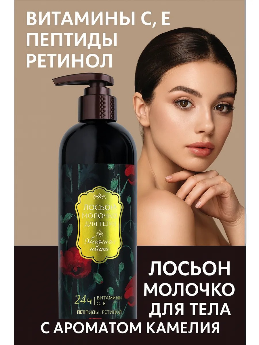 Лосьон-молочко для тела с нежным ароматом камелии — это идеальный уход за кожей, который сочетает интенсивное питание, увлажнение и защиту. Средство создано для тех, кто ценит гармонию красоты и здоровья. Его формула обогащена витамином C, витамином E, пептидами и ретинолом — активными компонентами, способными подарить коже сияние, гладкость и упругость.