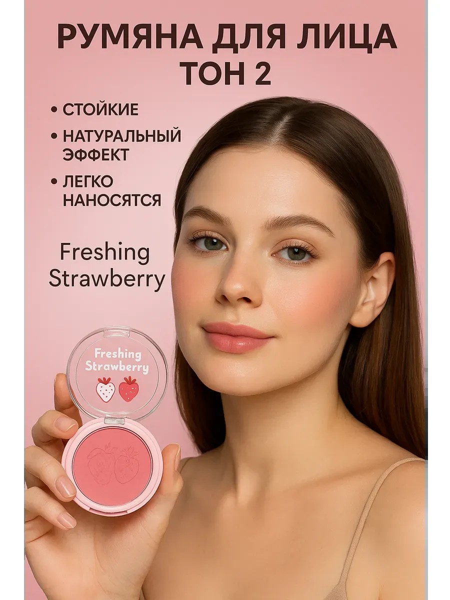 Румяна для лица в оттенке 2 ― это идеальное средство, чтобы подчеркнуть естественную привлекательность, придать коже свежесть и создать эффект здорового сияния. Деликатный клубнично-розовый тон идеально подходит для повседневного макияжа и праздничного образа, сохраняя баланс между натуральностью и выразительностью.