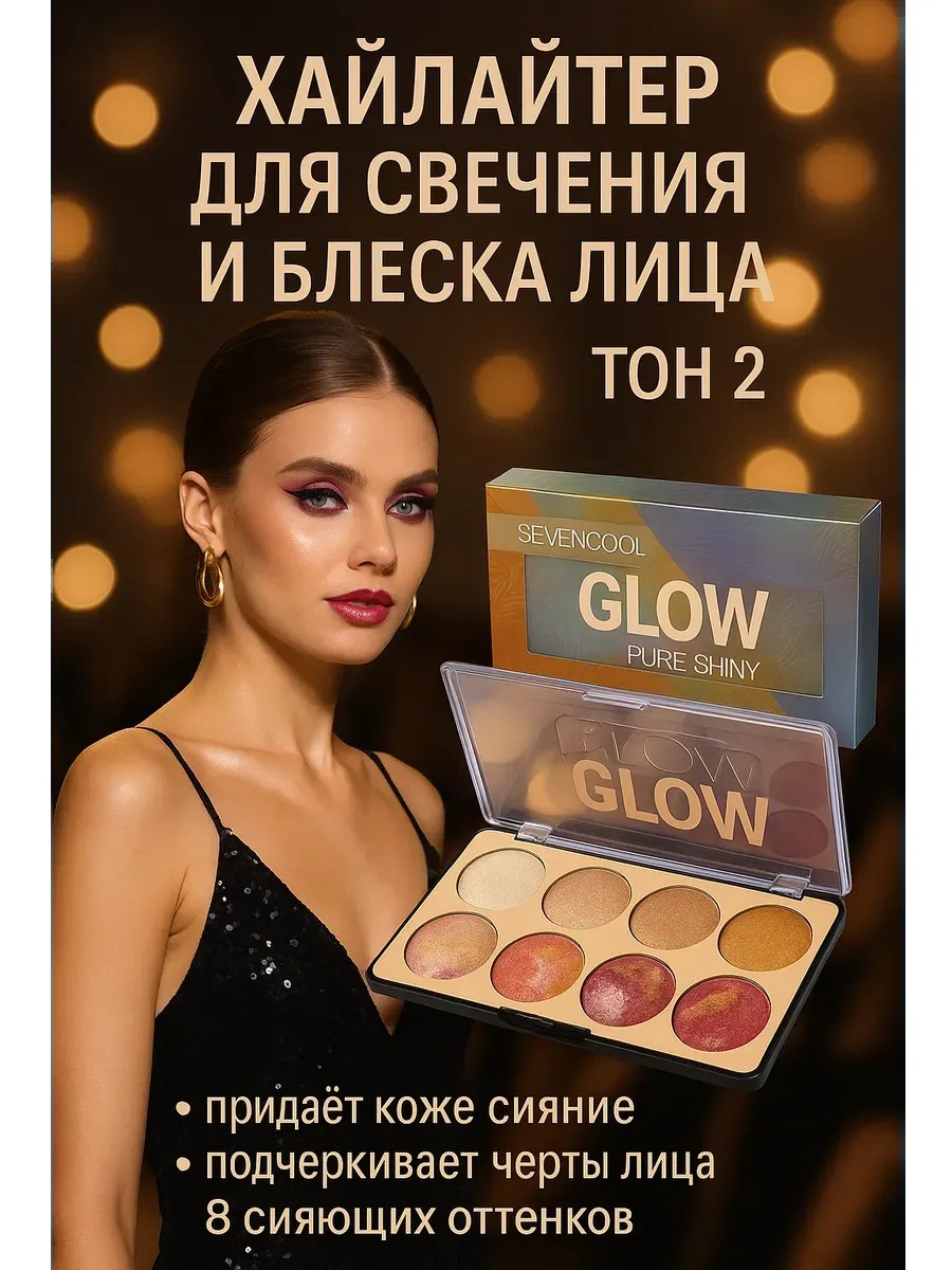 Therefore, the SevenCool Glow Pure Shiny Shade 2 highlighter is more than just a makeup product. It's a tool for self-expression, an opportunity to highlight your individuality and create a unique style. This eight-color palette opens up broad horizons for experimentation and inspiration. It will make every woman feel confident, beautiful, and radiant.