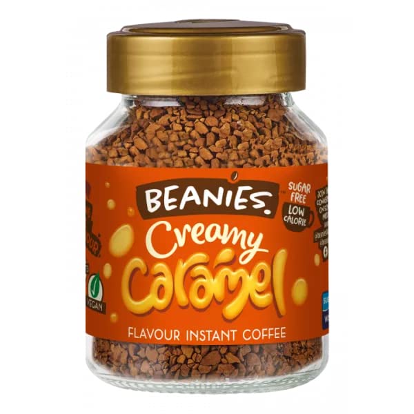 BEANIES Flavor Instant Coffee Powder CREAMY CARAMEL Hot and Cold Coffee makes 25 cups of 100 Arabica lightly roasted coffee 50 g Bottle creamy caramel