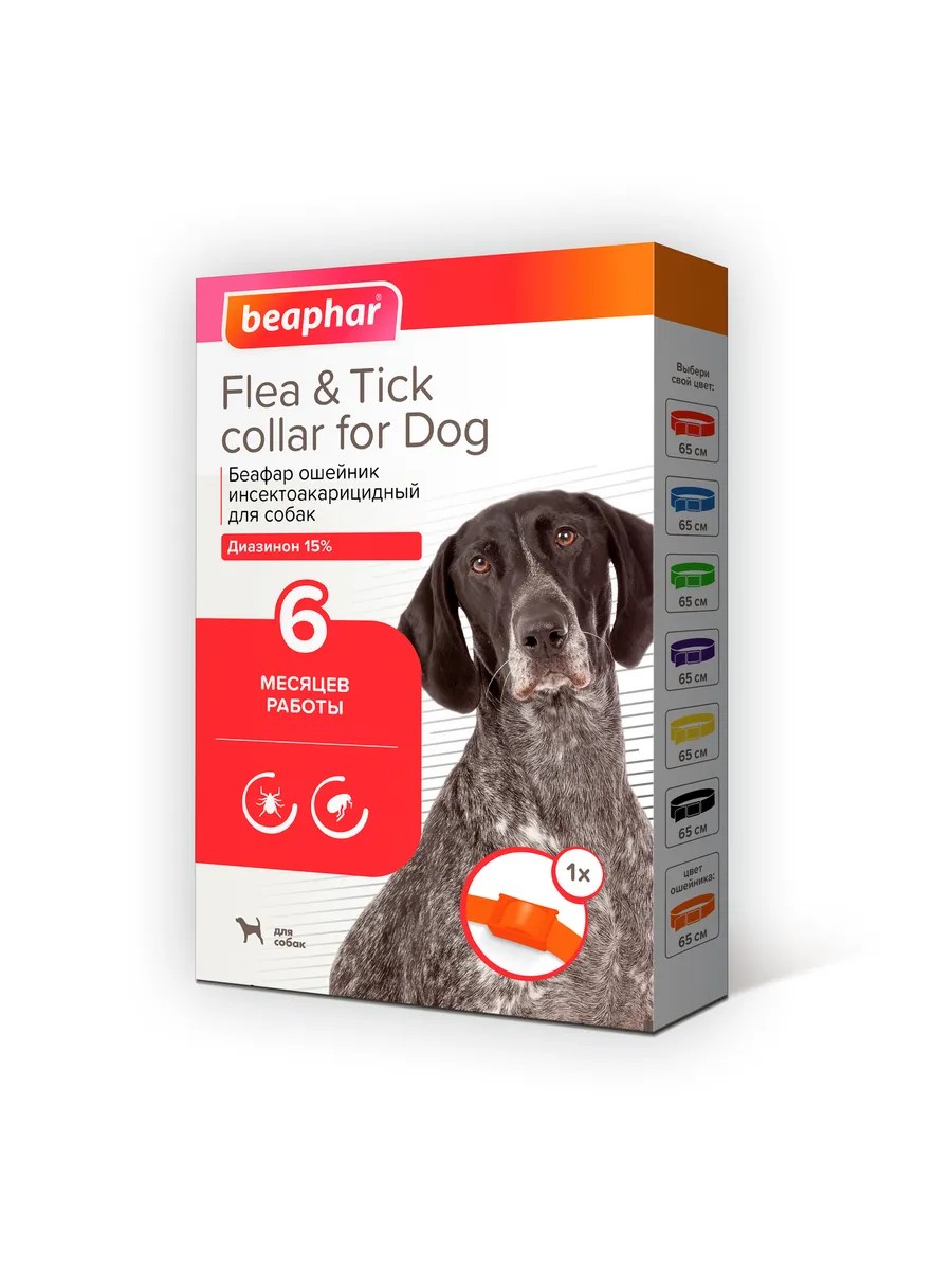 beaphar Ошейник от блох и клещей для собак (ОРАНЖЕВЫЙ 65см)