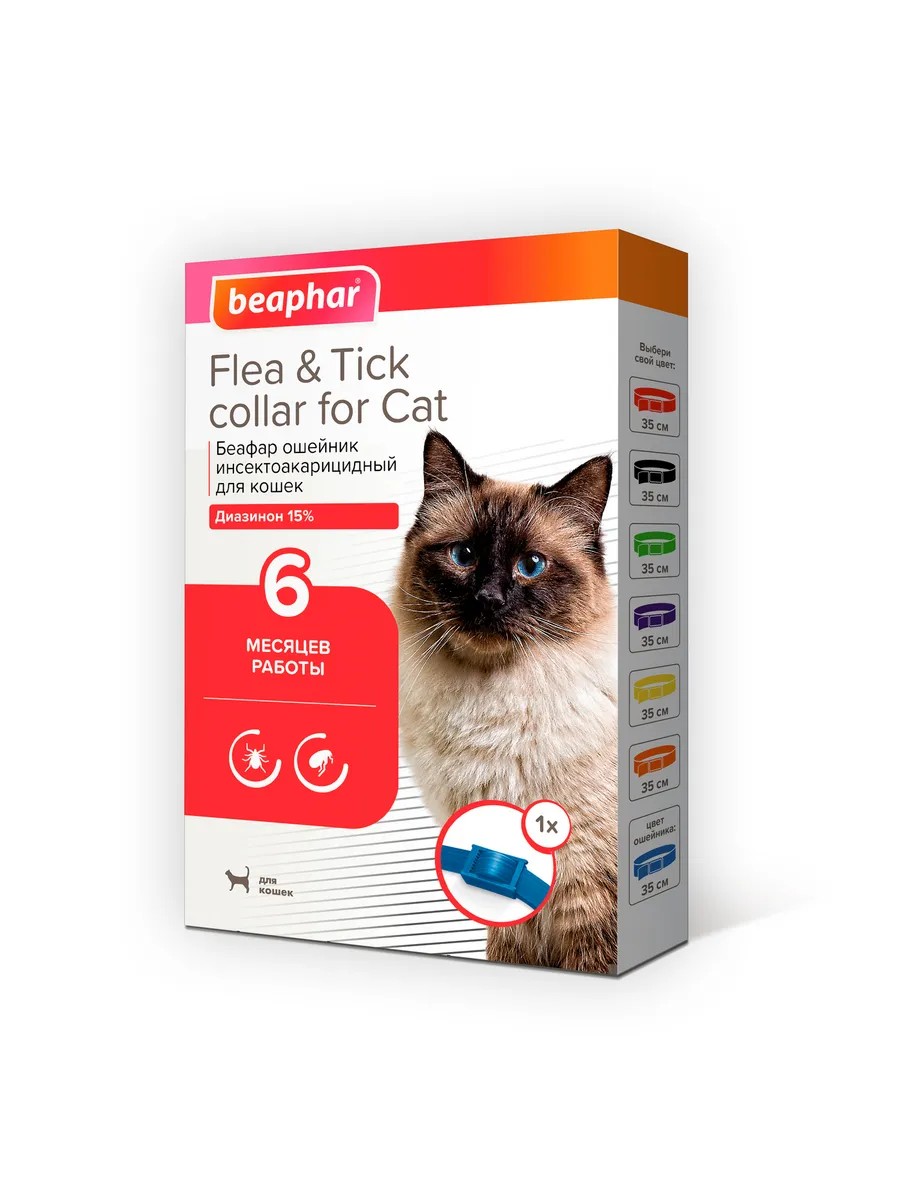 beaphar Ошейник от блох и клещей для кошек (СИНИЙ 35см)