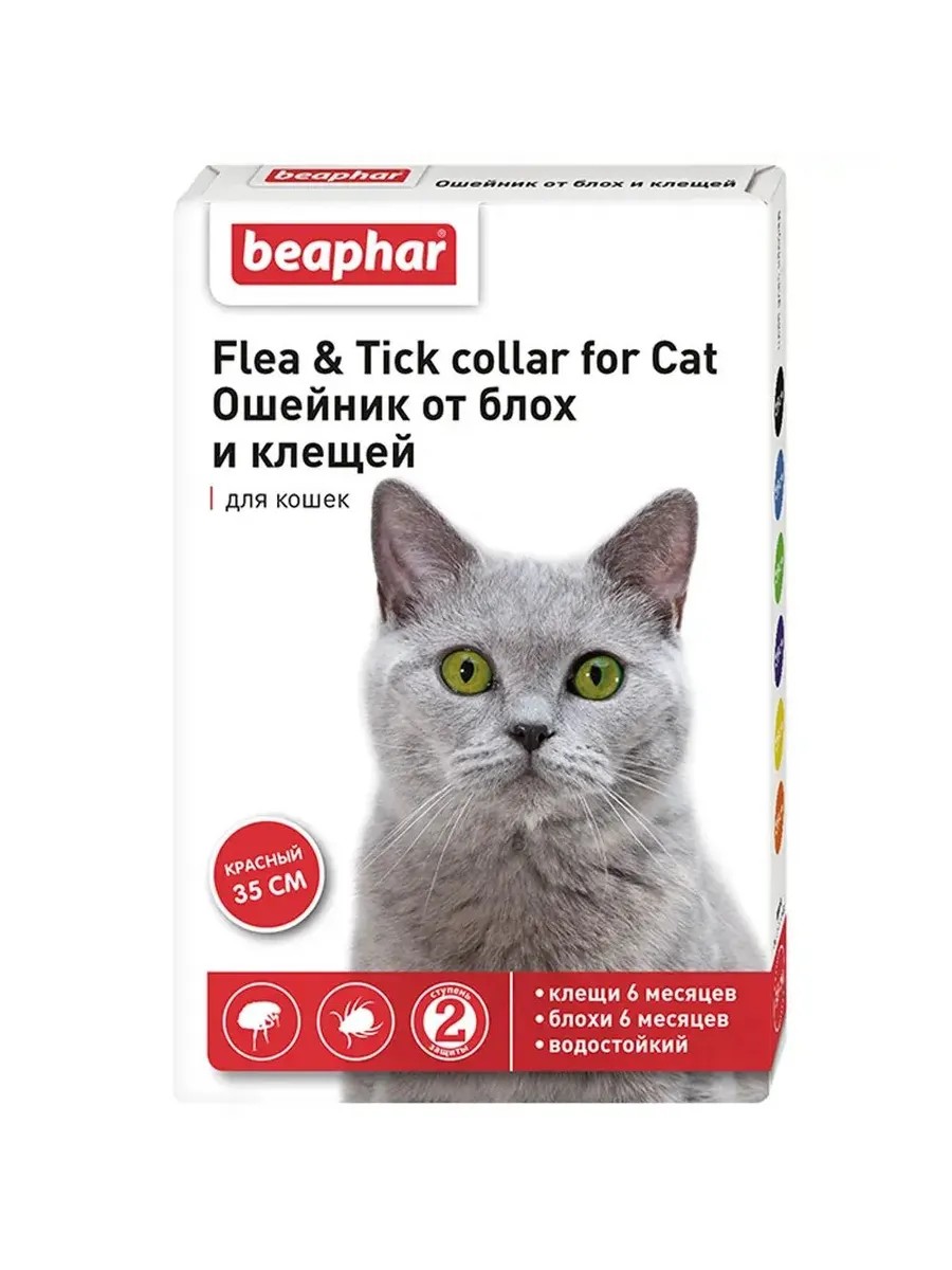 beaphar Ошейник от блох и клещей для кошек (КРАСНЫЙ 35см)