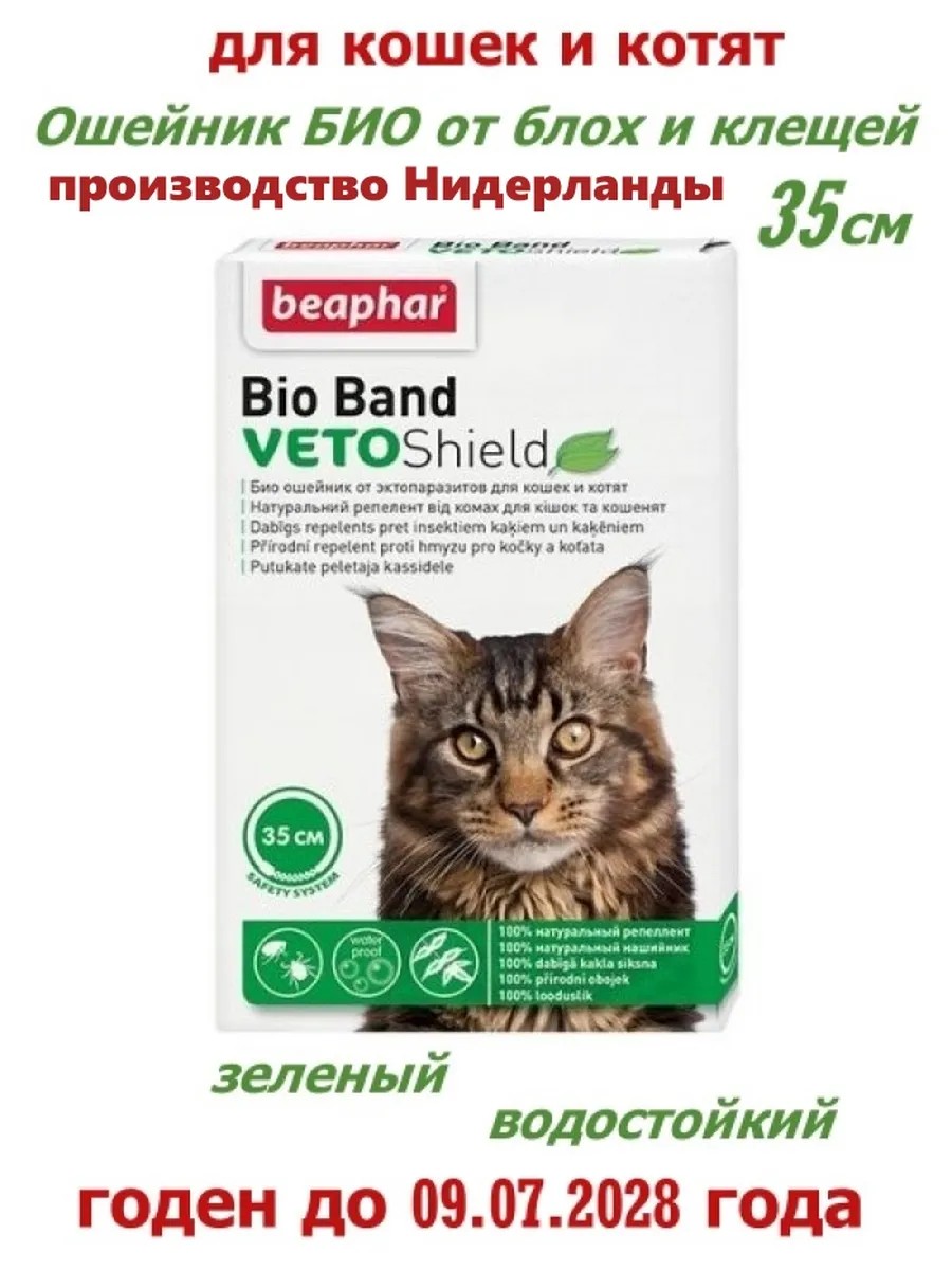 Беафар/Beaphar Ошейник БИО от блох, клещей для кошек 35см, зеленый