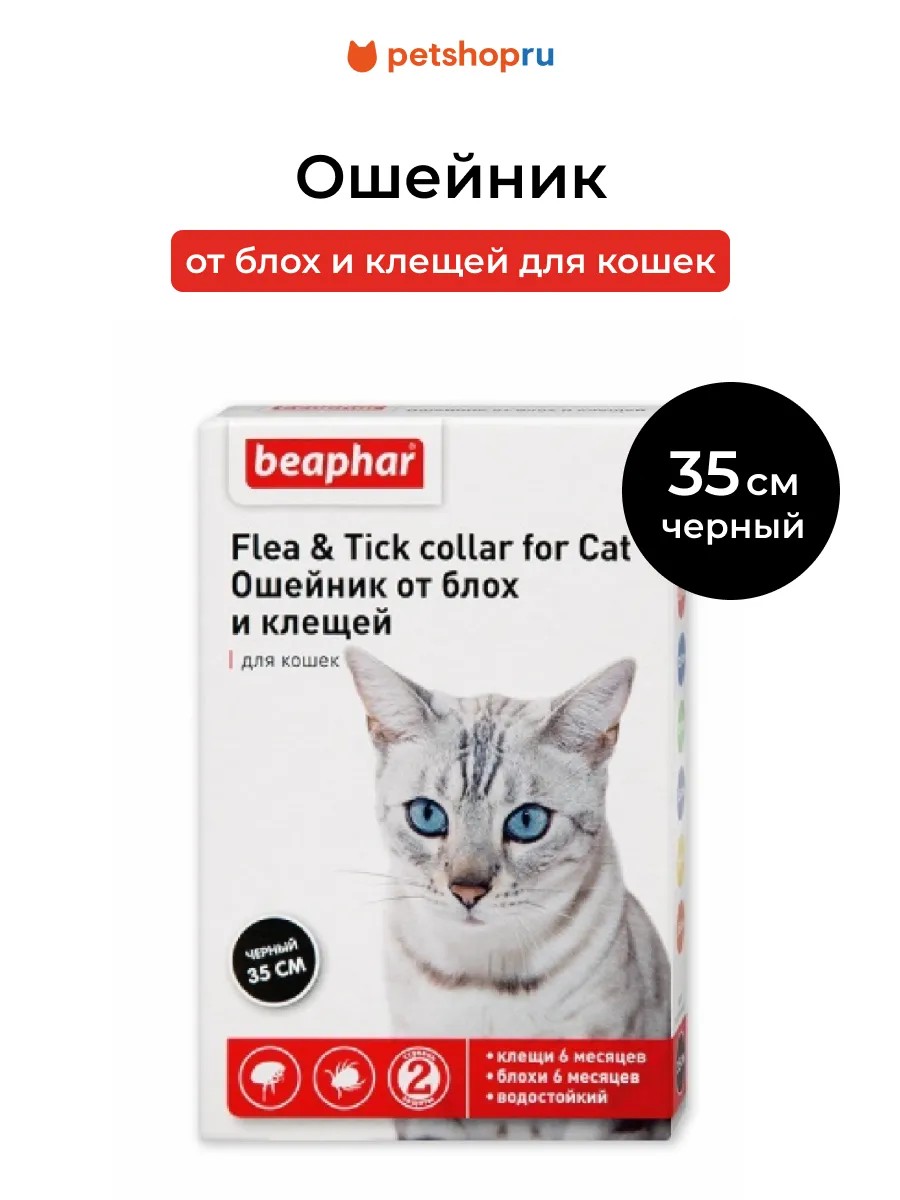 beaphar Ошейник от блох и клещей для кошек, черный, 35см