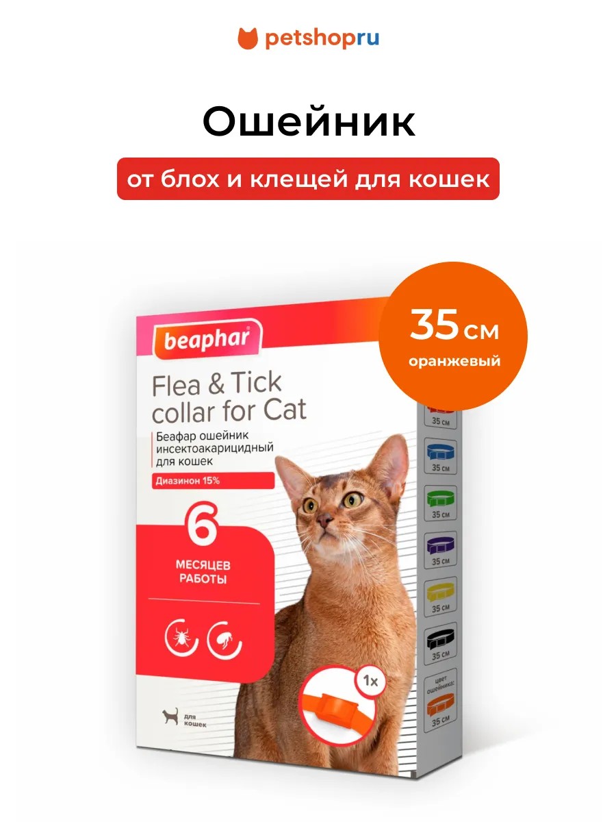 beaphar Ошейник от блох и клещей для кошек, оранжевый, 35 см