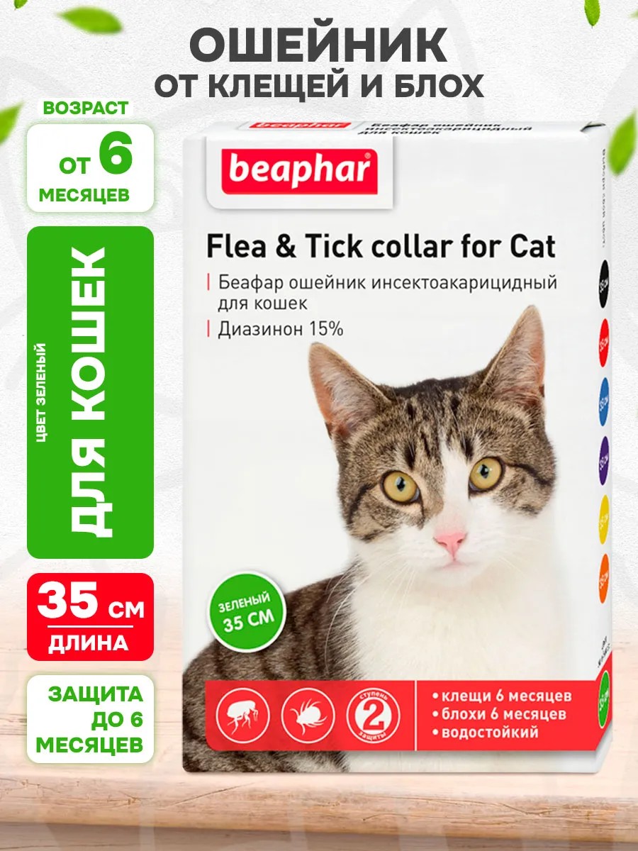 beaphar Ошейник от клещей и блох для кошек зеленый 35 см