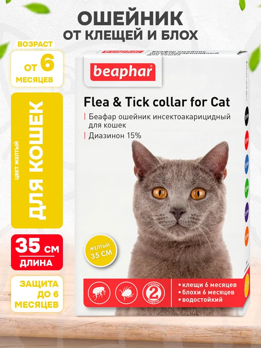 beaphar Ошейник от клещей и блох для кошек желтый 35 см
