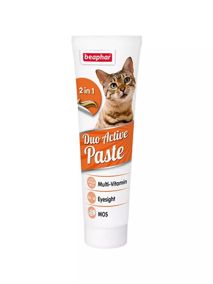 Beaphar Duo Active Paste is a multivitamin paste for cats. 100g. A two-color paste nutritional supplement for cats. It provides essential vitamins and improves intestinal flora. It is especially recommended after deworming, illness, or antibiotic use.