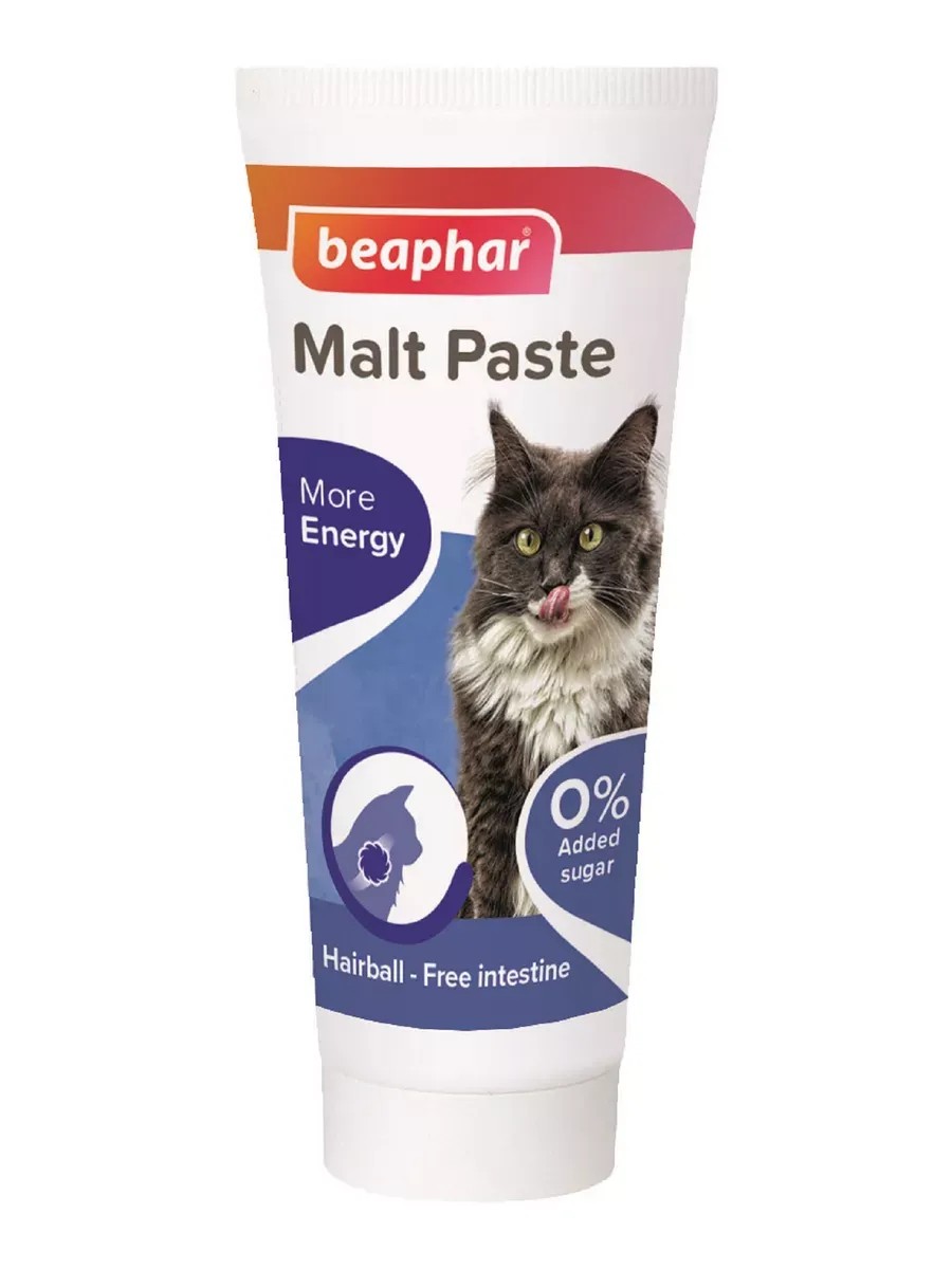 Beaphar MALT PASTE, a paste for removing hair from the intestines of cats, 25g. Beaphar Malt paste is used from 3 months of age. Malt softens hairballs that accumulate in the digestive tract when grooming. Hair is removed in the form of feces, without unwanted vomiting or constipation. MOS removes toxins from the body. *Malt paste* promotes the natural cleansing of the gastrointestinal tract of cats and kittens from ingested hair. Relieves cats from vomiting, loss of appetite, intestinal blockages, and constipation. By using it occasionally, you will avoid serious health problems for your pet.