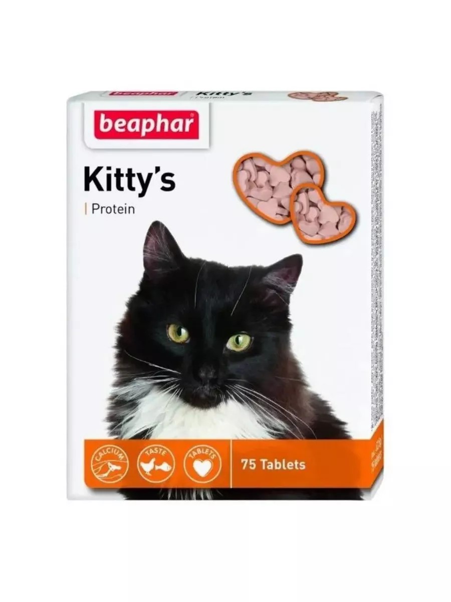 Beaphar Kitty's Protein (Беафар) - витаминизированное лакомство для кошек с протеином. Витамины в виде лакомства с протеином и вкусом рыбы (треска не менее 4%) для кошек. Протеин поможет укрепить здоровье вашей кошки и поддержать ее иммунную систему. Очень полезное и вкусное лакомство. Рекомендуется котятам от 6 недель и взрослым кошкам.