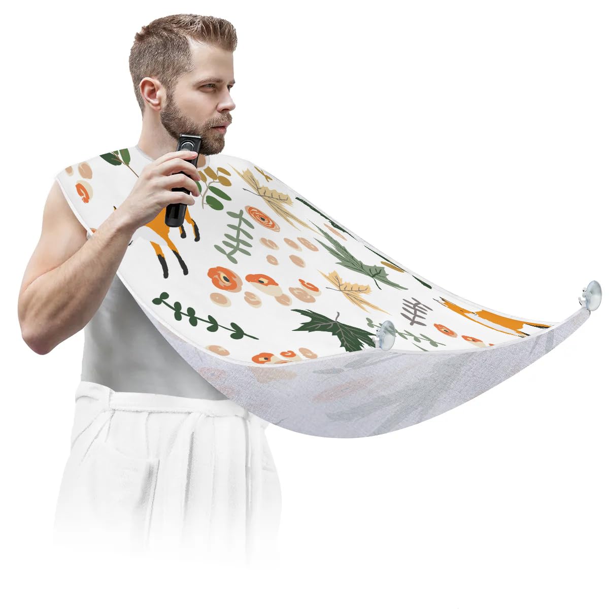 fiber fabric, ensuring exceptional quality. The fabric has a smooth and soft surface that is not sticky to hair, making it comfortable to wear during grooming sessions. It is also waterproof and anti-static, further enhancing its practicality. In addition, it is equipped with two high-quality suction hooks that provide powerful suction without leaving marks on mirrors or tiles. ?Convenient and Easy to Use?: Using our beard hair catcher is a breeze. Just fasten it around your neck using the adjustable strap and secure it to the mirror. Once in place, you can effortlessly proceed with your regular grooming routine. When you're done, simply remove the beard bib from the suction cups. Then brush the collected hair into the trash can for easy cleanup. ?Effortless Hair Cleanup?: Our Cute Foxes Pattern beard bib is expertly designed to capture all loose beard hair, mustache, and sideburn trimmings, providing effortless cleanup and keeping your sink immaculately clean. This saves you valuable time that would otherwise be spent on tedious cleaning tasks. Not only does it serve a practical function, but it also adds a stylish touch to your daily grooming routine.