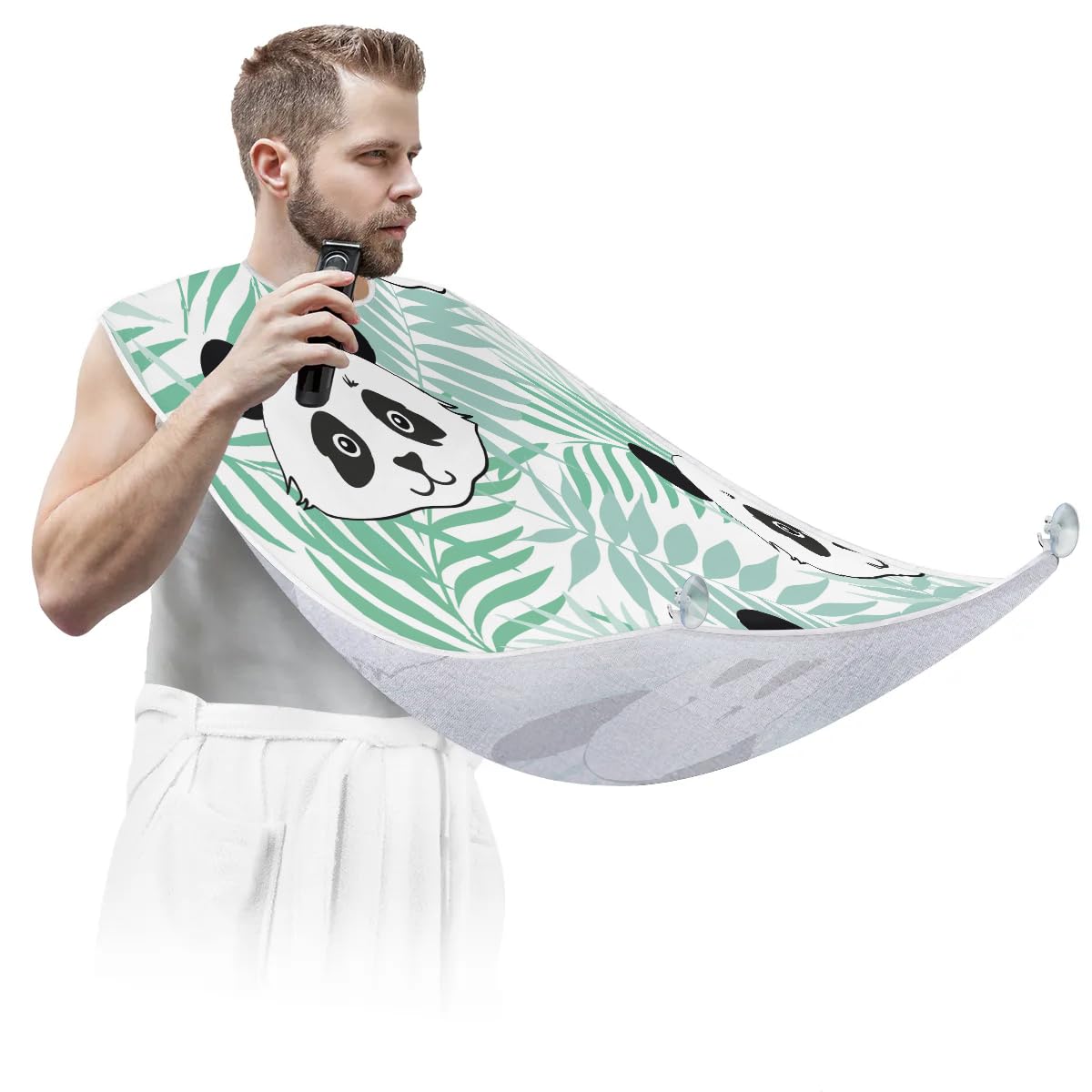 fiber fabric, ensuring exceptional quality. The fabric has a smooth and soft surface that is not sticky to hair, making it comfortable to wear during grooming sessions. It is also waterproof and anti-static, further enhancing its practicality. In addition, it is equipped with two high-quality suction hooks that provide powerful suction without leaving marks on mirrors or tiles. ?Convenient and Easy to Use?: Using our beard hair catcher is a breeze. Just fasten it around your neck using the adjustable strap and secure it to the mirror. Once in place, you can effortlessly proceed with your regular grooming routine. When you're done, simply remove the beard bib from the suction cups. Then brush the collected hair into the trash can for easy cleanup. ?Effortless Hair Cleanup?: Our Cute Panda Paint beard bib is expertly designed to capture all loose beard hair, mustache, and sideburn trimmings, providing effortless cleanup and keeping your sink immaculately clean. This saves you valuable time that would otherwise be spent on tedious cleaning tasks. Not only does it serve a practical function, but it also adds a stylish touch to your daily grooming routine.