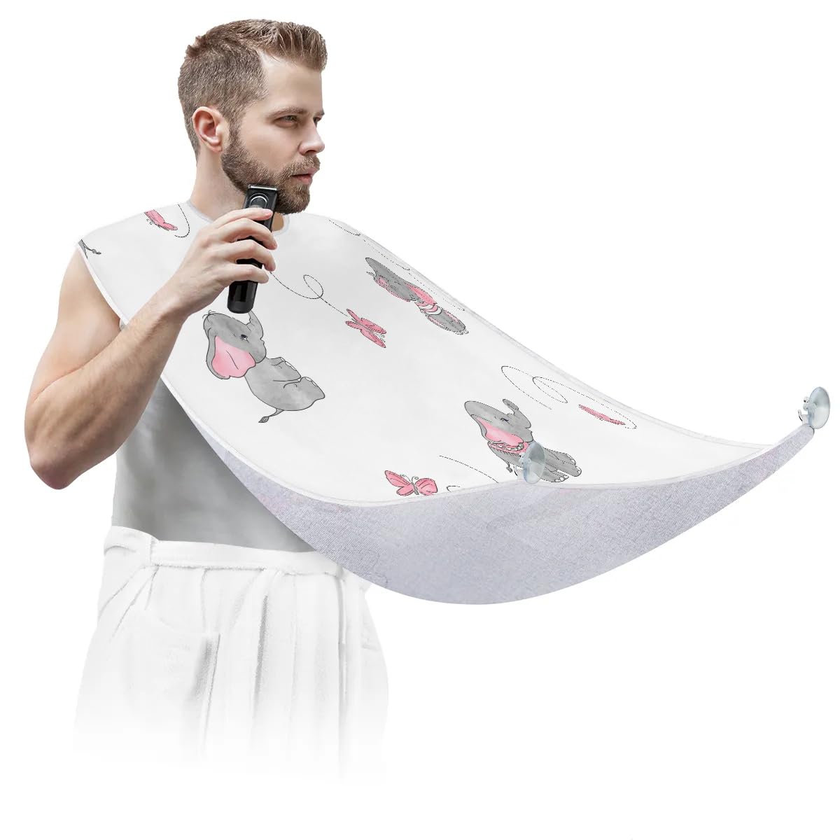 fiber fabric, ensuring exceptional quality. The fabric has a smooth and soft surface that is not sticky to hair, making it comfortable to wear during grooming sessions. It is also waterproof and anti-static, further enhancing its practicality. In addition, it is equipped with two high-quality suction hooks that provide powerful suction without leaving marks on mirrors or tiles. ?Convenient and Easy to Use?: Using our beard hair catcher is a breeze. Just fasten it around your neck using the adjustable strap and secure it to the mirror. Once in place, you can effortlessly proceed with your regular grooming routine. When you're done, simply remove the beard bib from the suction cups. Then brush the collected hair into the trash can for easy cleanup. ?Effortless Hair Cleanup?: Our Elephants Butterfly beard bib is expertly designed to capture all loose beard hair, mustache, and sideburn trimmings, providing effortless cleanup and keeping your sink immaculately clean. This saves you valuable time that would otherwise be spent on tedious cleaning tasks. Not only does it serve a practical function, but it also adds a stylish touch to your daily grooming routine.