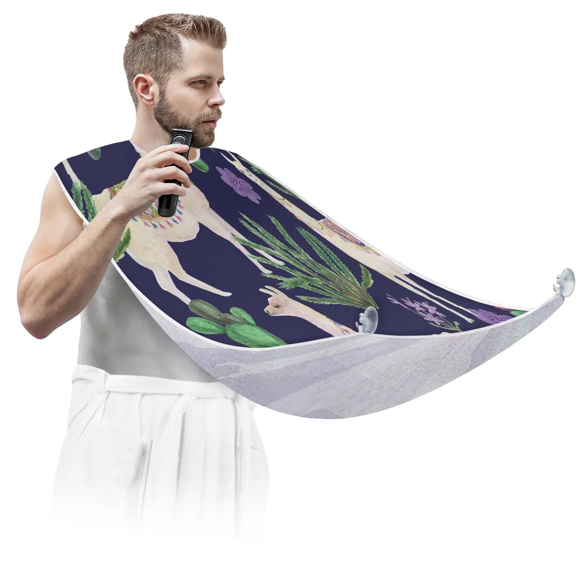 fiber fabric, ensuring exceptional quality. The fabric has a smooth and soft surface that is not sticky to hair, making it comfortable to wear during grooming sessions. It is also waterproof and anti-static, further enhancing its practicality. In addition, it is equipped with two high-quality suction hooks that provide powerful suction without leaving marks on mirrors or tiles. ?Convenient and Easy to Use?: Using our beard hair catcher is a breeze. Just fasten it around your neck using the adjustable strap and secure it to the mirror. Once in place, you can effortlessly proceed with your regular grooming routine. When you're done, simply remove the beard bib from the suction cups. Then brush the collected hair into the trash can for easy cleanup. ?Effortless Hair Cleanup?: Our Lovely Alpacas beard bib is expertly designed to capture all loose beard hair, mustache, and sideburn trimmings, providing effortless cleanup and keeping your sink immaculately clean. This saves you valuable time that would otherwise be spent on tedious cleaning tasks. Not only does it serve a practical function, but it also adds a stylish touch to your daily grooming routine.