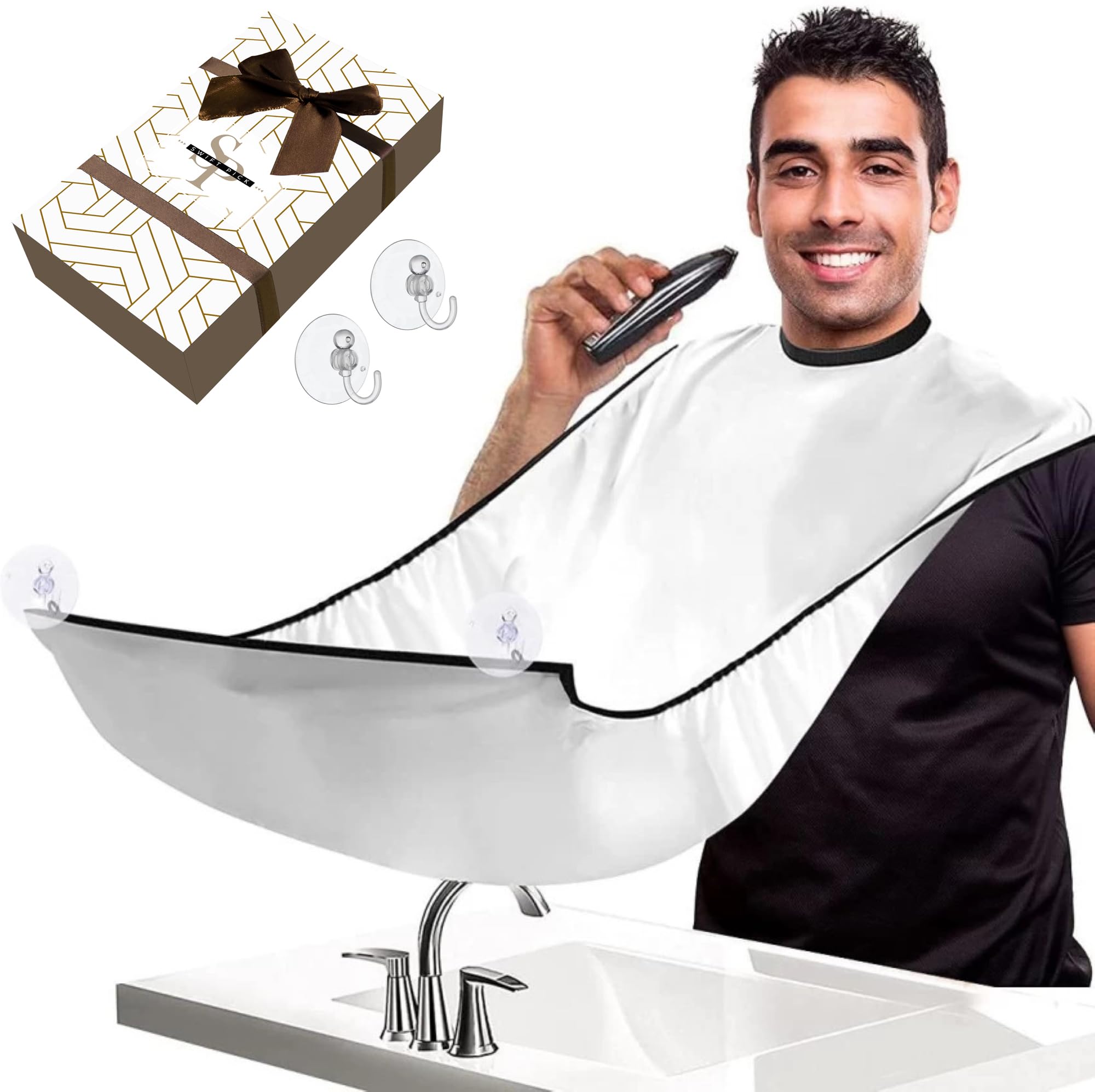 Beard Bib Apron, Beard Hair Catcher Waterproof Non-Stick Grooming Cloth, Shaving & Trimming & Beard Hair Catcher, with 2 Suction Cups, Best Gifts for Men By Swift Pick