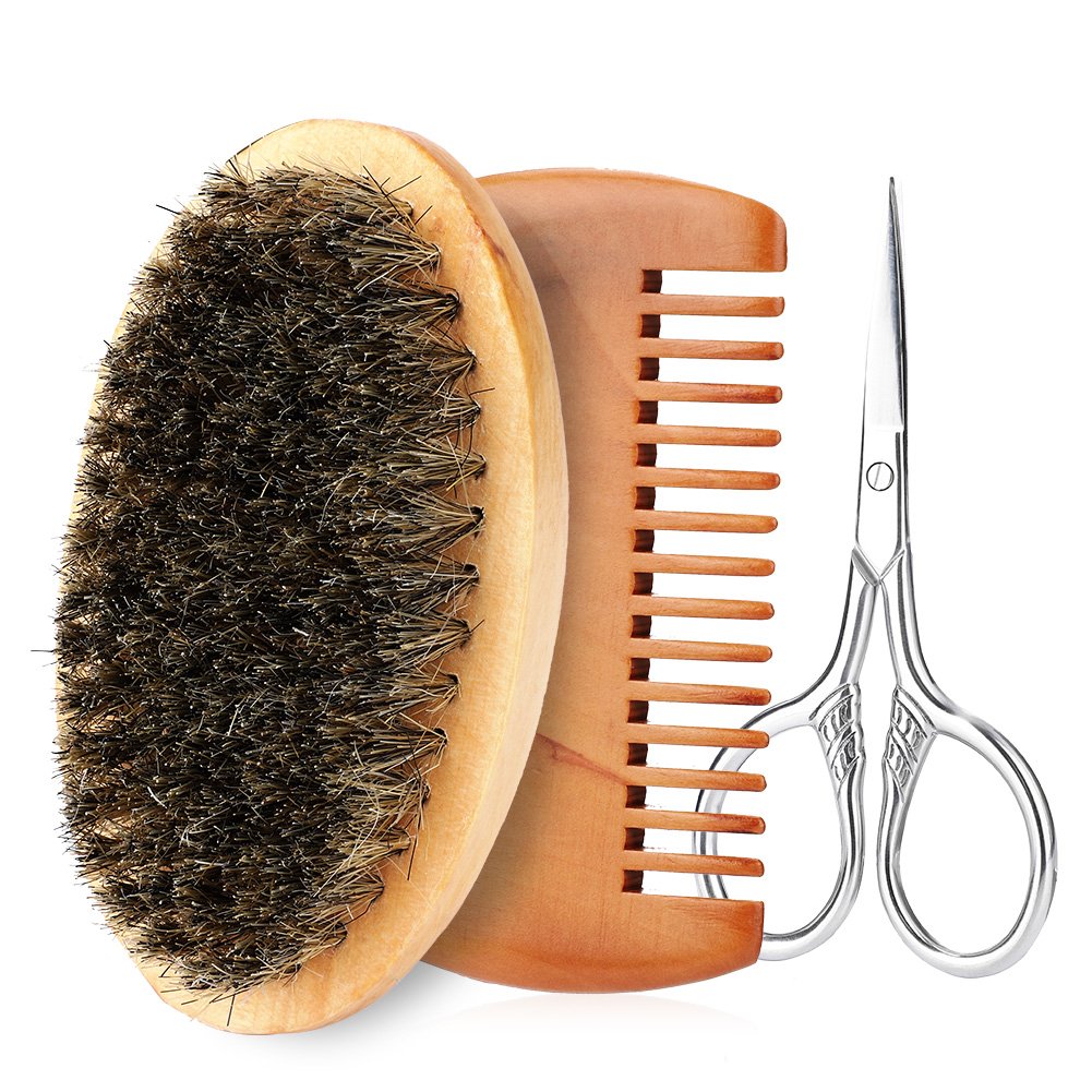 The perfect gift for everyone: show him the best gift you can offer for his passion. Make it a gift that can be easily packed on Father's Day, Christmas, on his birthday or on any other special occasion.Whether it is a contemporary city decoration or a brave lumberjack style, every man should contribute to his style at any time and anywhere.Razor scissors: high-quality professional barschneider for men. The ergonomic handle is designed in such a way that a third finger is pressed into the hole and two fingers are supported with the remaining fingers, so that they have more control and precision when cutting.Bart comb: double -sided wooden handle design, fine teeth and coarse teeth of the double -sided comb ensure the best beauty experience. No static electricity or traction, very suitable for knotting and for people with winter dryness. You can shorten your beard at any time.Neat and let yourself look best and feel. In any case, you will notice who the king of the jungle is.Beard brushes: The bristles are soft and flexible, not easy to fall and have no skin irritation. The wooden handle is durable and comfortable to use. The bristles can massage your face if you maintain your beard and are good at removing residues.They are suitable for any kind of beard, long, short, thick or thin.Fulfill your requirements: With this cosmetics set in travel size you can prepare yourself at any time and anywhere for every adventure. We use natural bamboo combat in pocket format to mess up your beards and beards and make your facial hair and smoother and smoother. It is small enough enough, to fit well in a handbag or a jean bag so that you can be safe.Das perfekte Geschenk für jeden: Zeigen Sie ihm das beste Geschenk, das Sie für seine Leidenschaft anbieten können.Machen Sie es zu einem Geschenk, das sich am Vatertag, an Weihnachten, an seinem Geburtstag oder an jedem anderen besonderen Anlass leicht verpacken lässt.Egal, ob es sich um eine zeitgenössische Stadtdekoration oder einen mutigen Holzfällerstil handelt, jeder Mann sollte jederzeit und überall zu seinem Stil beitragen. Rasierschere: Hochwertiger Profi-Bartschneider für Herren.Der ergonomische Griff ist so konzipiert, dass ein dritter Finger in das Loch gedrückt wird und mit den verbleibenden Fingern zwei Finger gestützt werden, sodass Sie beim Zuschneiden mehr Kontrolle und Präzision haben. Bartkamm: Doppelseitiges Holzgriffdesign, feine Zähne und grobe Zähne des doppelseitigen Kamms sorgen für das beste Schönheitserlebnis.Keine statische Elektrizität oder Zugkraft, sehr gut geeignet zum Verknoten und für Menschen mit Wintertrockenheit.Mit einer Schere können Sie Ihren Bart jederzeit kürzen.Halten Sie Ihren Bart ordentlich und lassen Sie sich am besten aussehen und fühlen.Sie wird auf jeden Fall bemerken, wer der König des Dschungels ist. Bartbürsten: Die Borsten sind weich und biegsam, nicht leicht zu fallen und haben keine Hautreizungen.Der Holzgriff ist langlebig und bequem zu bedienen.Die Borsten können Ihr Gesicht massieren, wenn Sie Ihren Bart pflegen, und sind gut darin, Rückstände zu entfernen. Sie eignen sich für jede Art von Bartform, lang, kurz, dick oder dünn. Erfüllen Sie Ihre Anforderungen: Mit diesem Kosmetikset in Reisegröße können Sie sich jederzeit und überall auf jeden Abenteuereinsatz vorbereiten.Wir verwenden natürliche Bambuskämme im Taschenformat, um Ihre Bärte und Bärte durcheinander zu bringen und Ihr Gesichtshaar immer glatter und geschmeidiger zu machen.Es ist klein genug, um gut in eine Handtasche oder eine Jeanstasche zu passen, damit Sie sicher sein können.Bartpflege-Set für Herren - Doppelseitige Kamm- und Bartbürste - Weiche Kunsthaar-Stylingbürste und Rasierschere, Geschenkset für Herren, ideal zum Rasieren von Bärten und Schnurrbärten(Bart Kit)