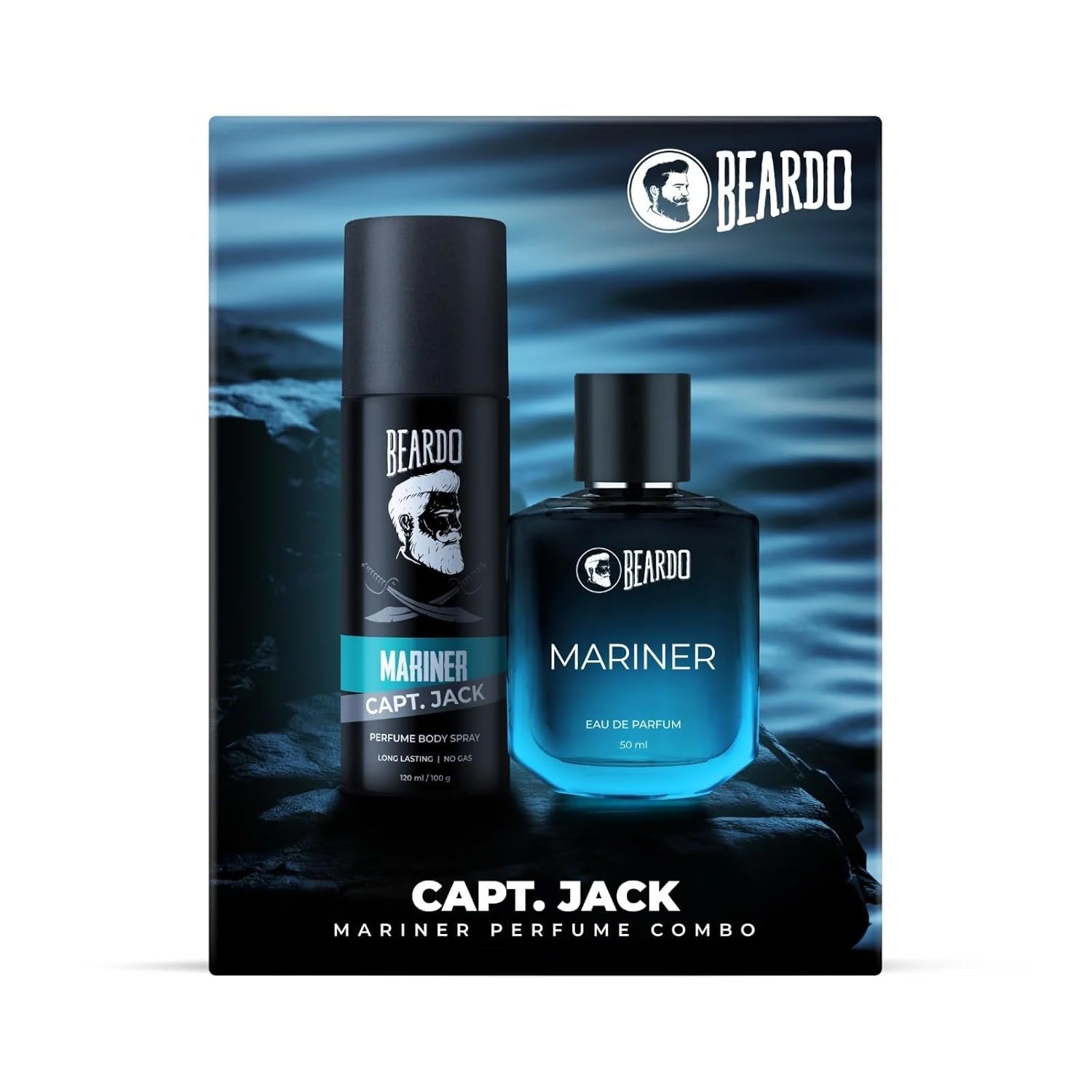Beardos Mariner Perfume EDP 50ml & Mariner Captain Jack Perfume Body Spray 120ml for Men | Eau De Parfum | Long Lasting Perfume for Men | Deodorant Body Spray for Men | Day Time Fragrance Body Spray For Men | Fresh, Aqua Notes | Gift for Men Gift for Brother | Friendship Day Gift