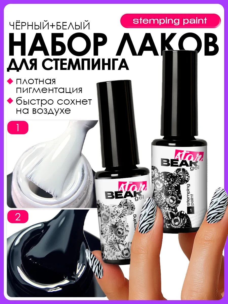 BearStar gel Набор лаков для стемпинга ногтей белый и черный