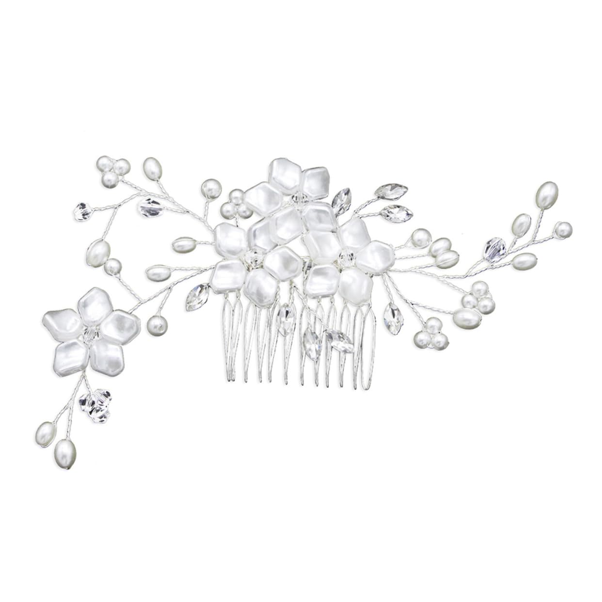 Floral hair comb-- good for going party banquet or wedding,women hair combs. Wedding headpiece-- super pretty, good for your lover, families, friends and coworkers,floral hair clip. Headdress for women-- exquisite manmade flower and pearl design with gorgeous color and gloss,grey lace front wigs. Rhinestone hair clips-- make your hairstyle charmer and more elegant,wedding hair combs. Bridal headpieces for wedding-- made of for durable and long-lasting wear with fashionable looks,wedding hair comb.