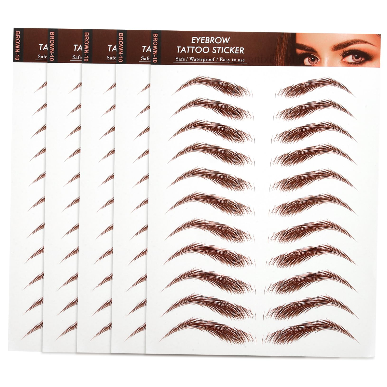 PRODUIT DESCRIPTION Description The simulated eyebrow sticker is a must-have for those who want natural-looking eyebrows without the hassle. The waterproof and durable material ensures the sticker stays in place for a long time without falling off. Easy to apply, simply stick the eyebrow sticker onto your eyebrows and skip the tedious eyebrow shaping process. Features -Color: Brown -Material: Sticker -Dimensions: 21.00 x 15.00 x 0.10 cm 8.25 x 5.89 x 0.04 in -Note: 11 pairs sheet - Achieve a high level of realism with these waterproof eyebrow stickers, a must-have for a good makeup look. - Made of durable and long-lasting material, these eyebrow stickers are designed for all-day wear. Enjoy a simple application process that saves time and eliminates the hassle from your beauty routine. Can be used for various occasions and complements your skin tone and hair color. Achieve a special and unique look with the water transfer tattoo sticker for eyebrows. SECURITY WARNING 1