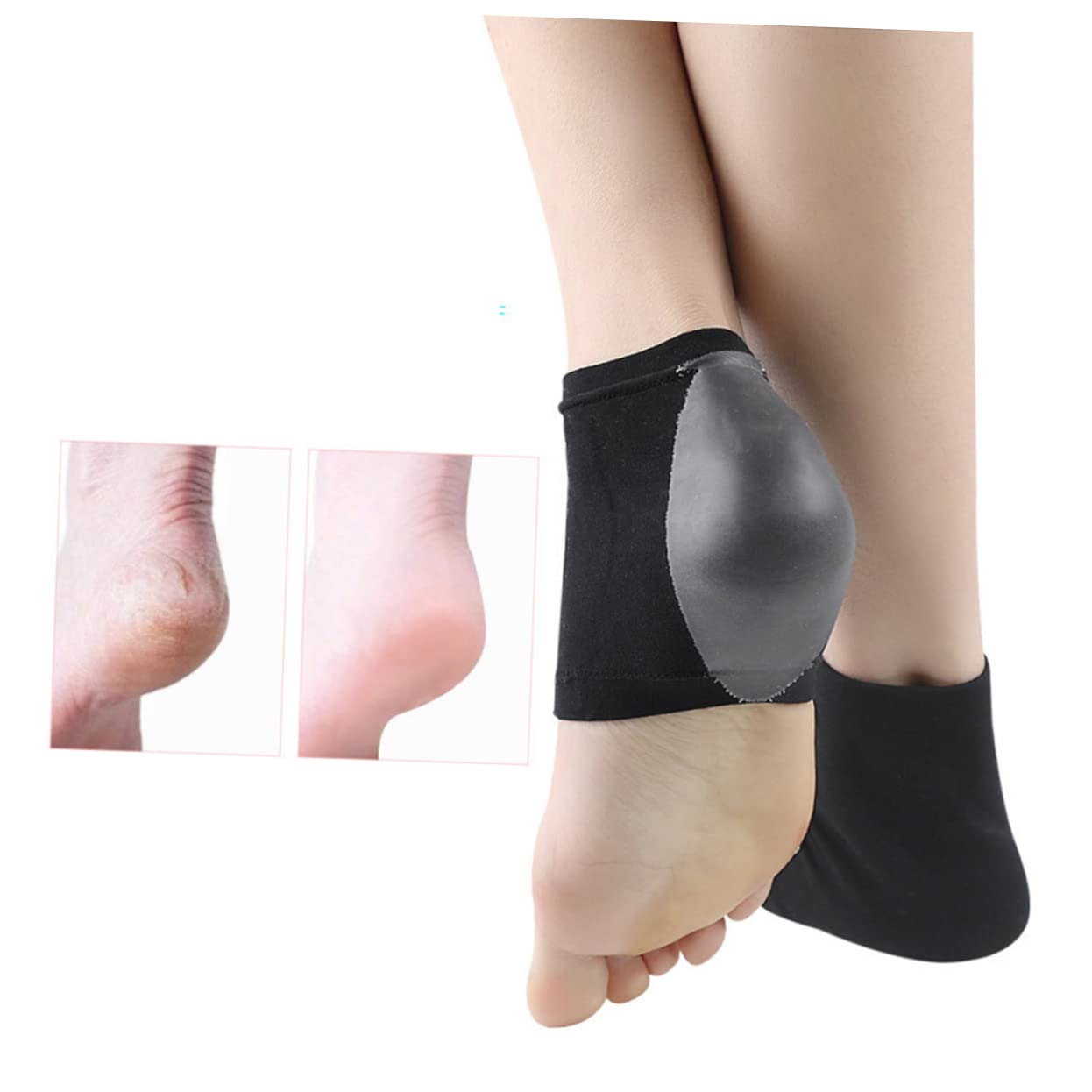 Heel protectors for high heel shoes: very stretchy and not easy to deform, can fit for most heel. Silicone heel socks: and . Heel protectors: running, walking, standing. Heel care socks: and . Arch support sleeves: it can be daily used together with a moisturizer to create better effect.
