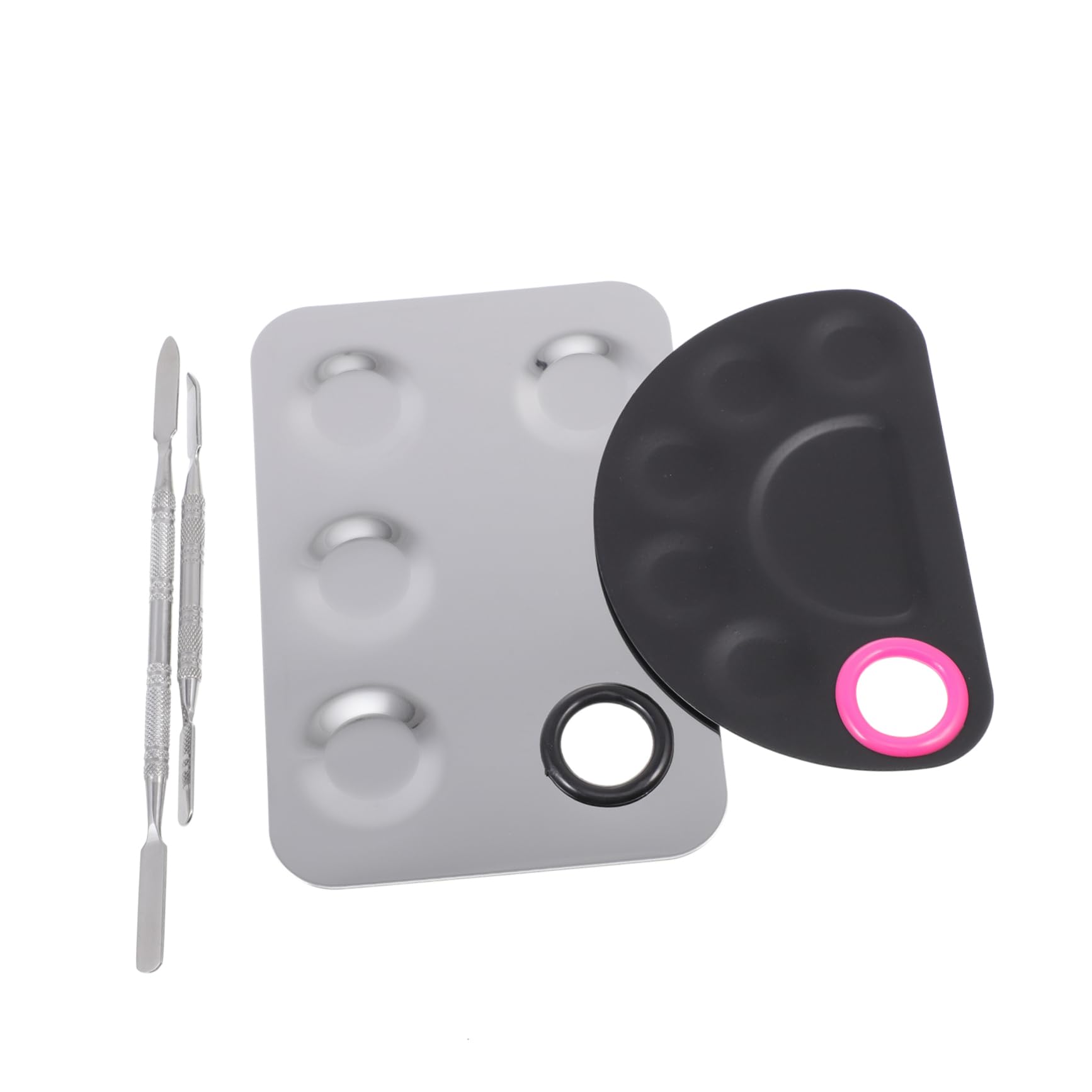 Metal makeup: wide applications: the is suitable for mixing foundation, blending lipstick or eye shadow, also can use with nail art paint, gels, nail polishes, pigments, lash adhesive, etc. key product features. Pigment mixing board: lightweight and compact, it does not require much strength to place and remove the mixing board. tools: adopting premium and no odor stainless steel material, our products can be for long- lasting use. Makeup mixing: cost-effective, you can buy this practical product at an . Color holder: wells mixing - with round wells, you can custom color of eye shadows, lipstick, concealer and foundations etc, and keep blending clean from each other key product features.