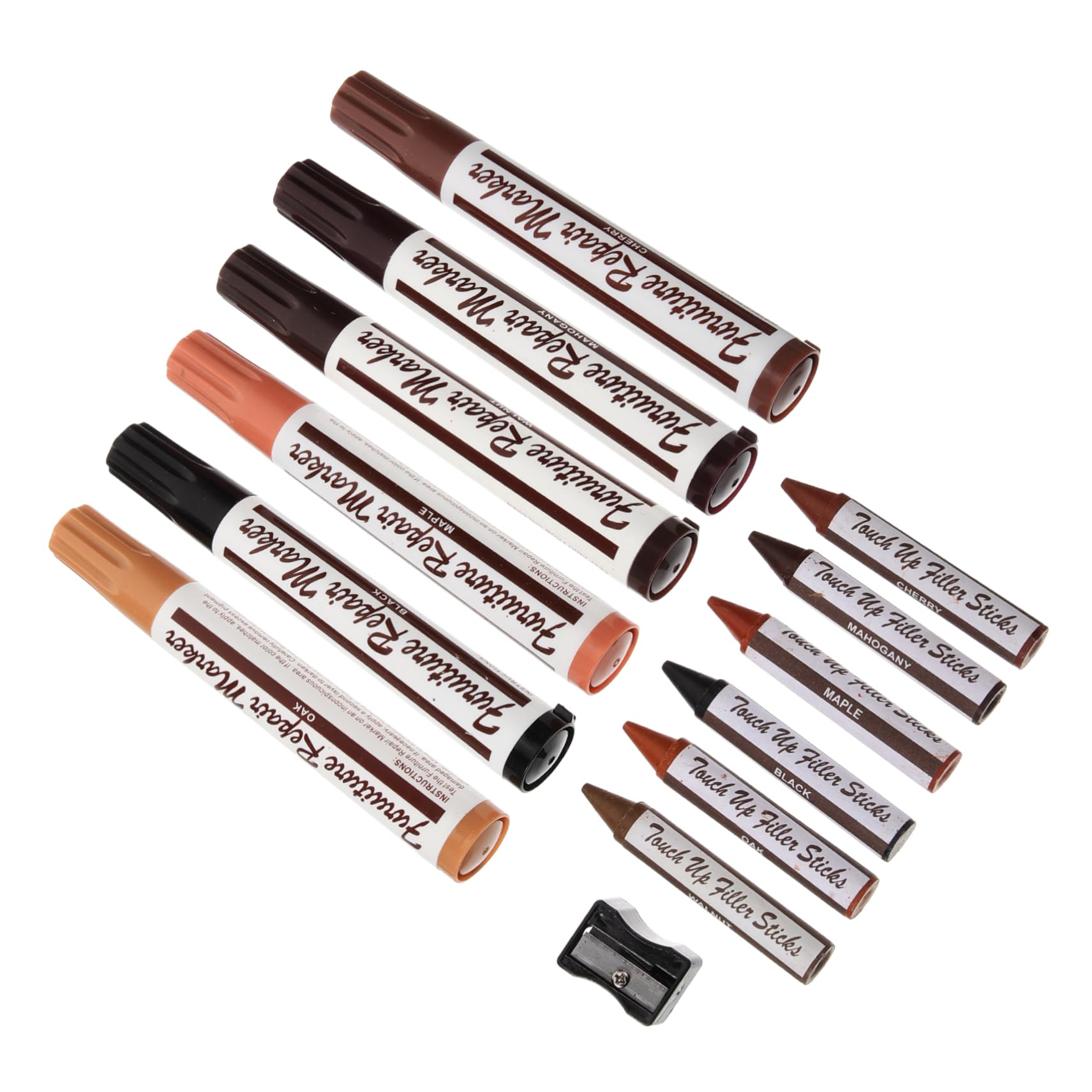 Package List 6 x Markers 6 x Crayons 1 x Pencil Sharpener Features -Material:Plastic, Metal furniture scratch pen -Color:Assorted Color floor scratch repair kit -Size:13.50X2.00X2.00cm/5.31X0.79X0 wood floor repair kit. - Made with excellent craftsmanship, it can perfectly match the original paint of your furniture wood stain pen. - It has a unique design, easy to master, and can bring convenience to your repair work touch-up marker. - Contains different colors, can meet your different needs, you can use it with confidence furniture repair accessories. - This product is mainly suitable for removing and repairing paint , which is very practical paint pens. - With reasonable design and excellent texture, it can quickly repair without excessive skills wood pens for . Goods Information wood scratch repair It instantly covers blemishes, chips, and nicks on scratched wood and wood finishing.wood pens for Draw over with the touch up marker directly.home supplies Simply draw over the scratch, allow it to quickly dry, and watch the disappear before your eyes! These are safe to use on all types of wooden furnitureWood stain pen: bright white color, strong coverage, not easy to fade, clear marking, bring you a good experience. Wood scratch repair: easily apply to damaged area with exact color matching or gradually blend light colors with dark colors to achieve your color. Furniture repair pen: with reasonable design and excellent texture, it can quickly repair without excessive skills. Painting pen for furniture: can be written on any surface, metal, glass, wood, stone, plastic, paper and so on, widely used. Wood crayons for : furniture repair pen is safe, fast-drying, strong covering power. sufficient quantity and different color can meet your different demands. Plastic, Metal.