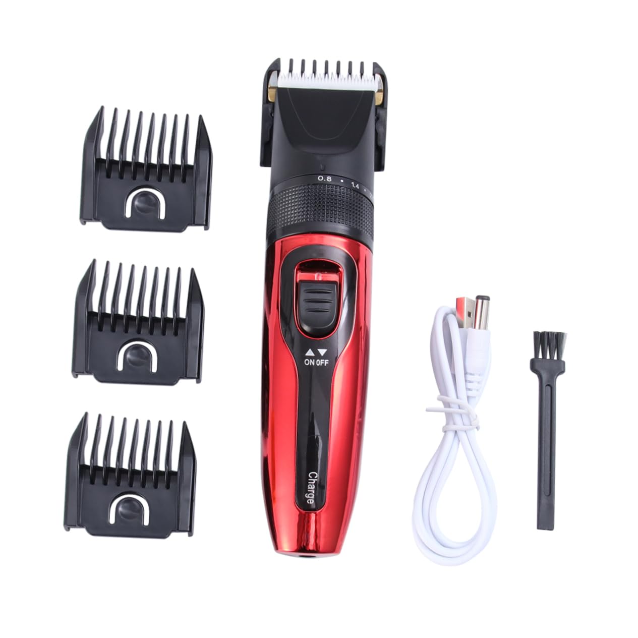 Package List 1 x Hair Clipper Characteristics - Material: Plastic and metal hair cutting tool. - Charging time: About 2h electric hair clippers. - Rated Voltage: 100-240V electric hair trimmer - Power: 12W. - Working time: About 3h. - Color: Red. - Size: Approx. 5x5x19cm - Smooth into the hair, cutting and clean, conducive to carving push light hair clippers. - material with stable performance and long service time hair trimmer for men. - Ergonomic slim body design make it very easy to handle with, for you to take with on travel or on business trip hair trimmer. - USB charging, lasts longer to use. - LCD Screen design, let you know the real time power information correctly. Goods Information men hair clippers Made by material.electric hair trimmer Our hair clipper will not snag or pull the hair, instead, it will protect your from accidental injuries.electric hair clippers Large LCD Screen let you know the real time battery information correctly.pet hair clippers The and high-quality motor of this hair clipper does not harm or scratch skin