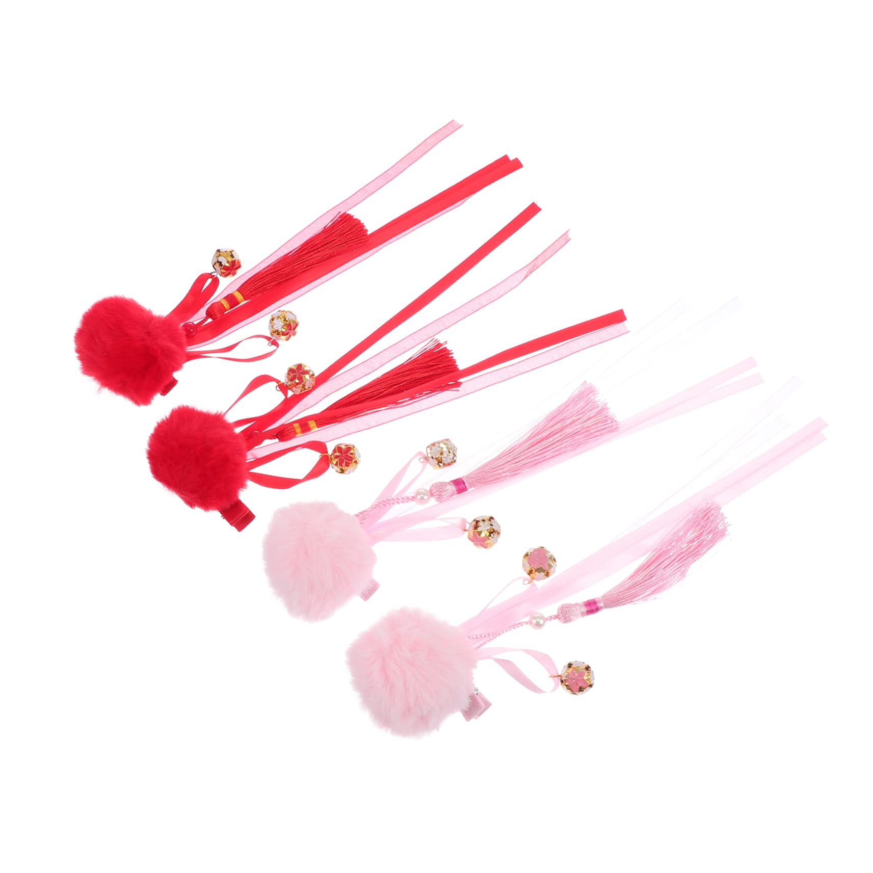 Beaupretty 2 Pairs antique hairpin hair claw clips for girls barrettes for girls red hair accessories hanfu headwear chinese hair accessories for girls pom ball headpiece Plush Headwear