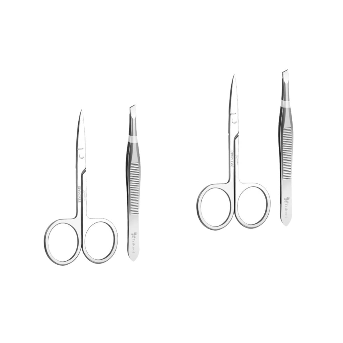 Package list 2 x scissors 2 x tweezers Characteristics - The handle ergonomically shaped and does not feel uncomfortable as an eyebrow care tool. -Material: stainless steel and eye brow shears - made of high -quality materials ,.You can use it without hesitation. -Mares: approx. 8.90x4.50x0.50cm 3.50x1.77x0 nasal scissors. - You can give this product to your friends and family.Ey brow's tweezers will make them very happy. -Color: silver hair removal tweezers - Perfect for trimming eyebrows.Suitable for personal use or professional use of beauty make-up tools. - To transport the product light and easy so that you can take it with you anywhere.Stainless steel scissors. Description of the goods Eyebrow care tools because our products can meet your needs.Professional tweezers are not easy to deform, which brings you a lot of comfort.Cosmetic tweezers with high quality materials, practical and ear hair shears If you are looking for professional and affordable tools for trimming the eyebrows, then you are just right