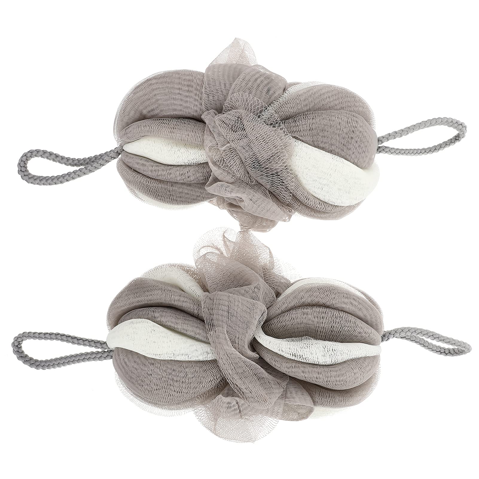 Description 2Pcs Long Bath Loofahs Bath Sponge Pouf Loofahs Stretchable Braided Bath Shower Sponge Ball for Back Body Bath Features - Material: Nylon - Size: 20x10cm. - Color: Grey. Package Including 2 x Bath Balls