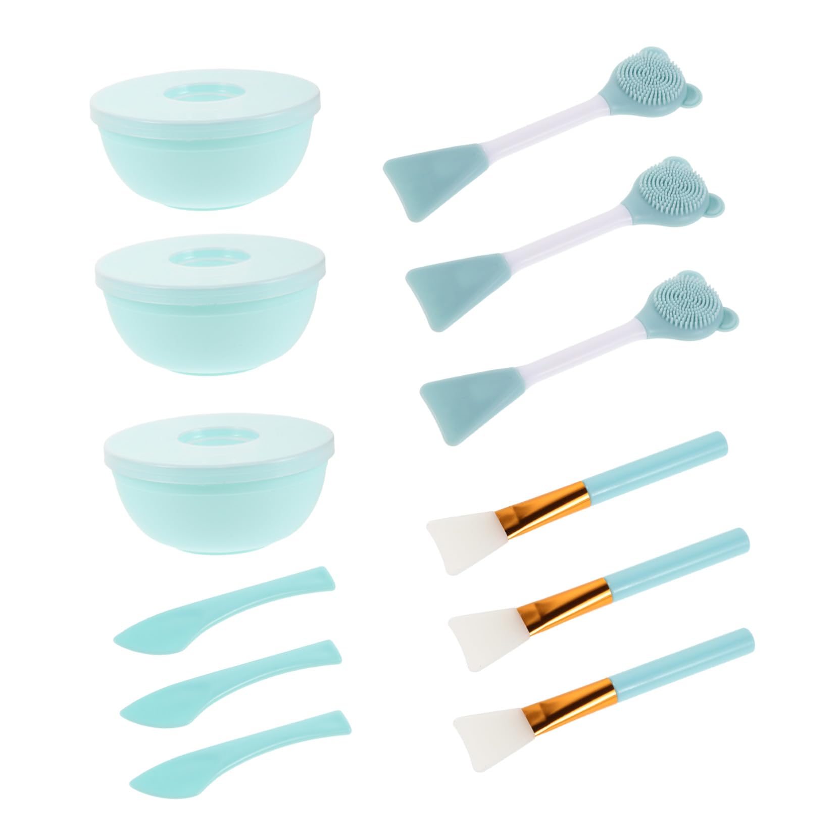 Beaupretty 3 Ensembles Set pour Masque Facial avec Bol M langeur Silicone Brosse Double-face Silicone pour Application et Nettoyage Kit de Soins Visage Portable et Multifonctionnel Bleu ciel
