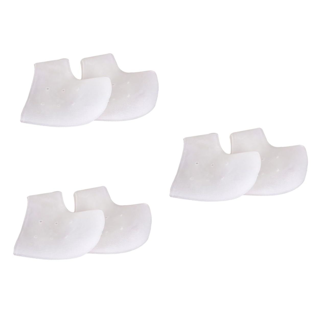 Package Include 3 x Pair of Plantar Silicone Gel Sleeve Breathable Protective Heel Air Support Reduce Pressure on Heel Heel and Cracked Heel (White) Features - Material: Silicone moisturizing socks. - Size: 10x9x0.5cm heel support. - Color: White silicone heel sleeve. - Made with ultra-lightweight, medical grade silicon that softens foot callouses and moisturizes the heel Heel Sleeves for Gel. - This sleeve provides compression that helps to alleviate from fallen arches heel sleeve support. - Absorbs from heel strike which will prevent heel spurs that often follow plantar heel support for plantar . - The comfortable design provides a snug fit around your ankles and easily fits into any shoes even with socks on silicone gel. - Soften the calluses, moisturizing and whitening Heel Sleeves. Goods Information Silicone Gel Sleeve The comfortable design provides a snug fit around your ankles and easily fits into any shoes even with socks on.Heel Sleeves for Gel With breathable air holes, it activates the air circulation during movement as you walk.Heel insole the pressure of your foot heels and prevent dry skin.Comfortable Plantar Silicone Gel Sleeve Our product is designed with medical grade gel silicon to provide ultimate safety and comfort