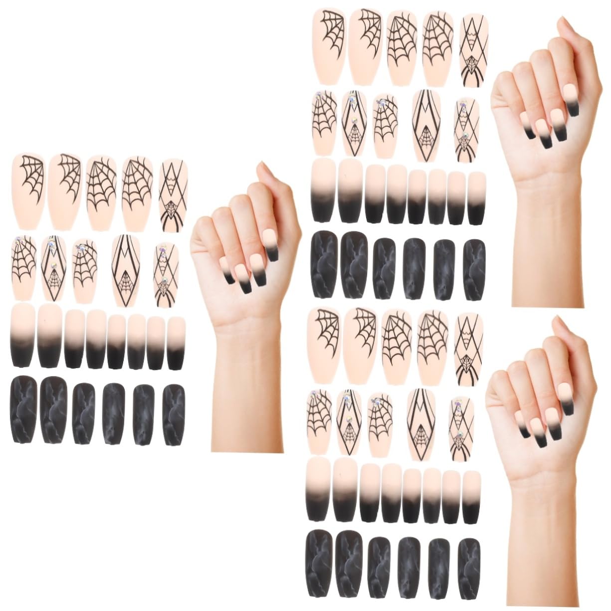 Beaupretty 3 Sets Halloween Fake Nails Fake Nails Coffin Fake Nails DIY False Nail Tips Nails for Women Ghost Decor Manicure Supply Manicures Charm Nail Decor Halloween False Nails Abs
