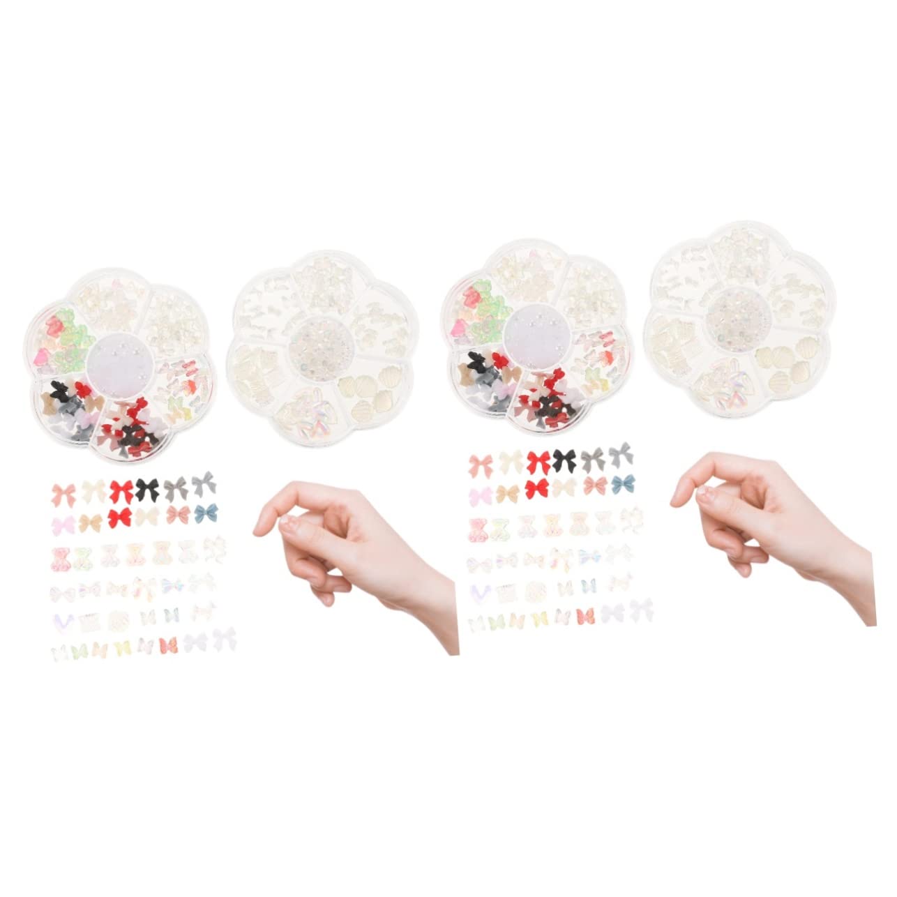 Beaupretty 4 Boxes Nail Art Accessories Nail Tech Accessories Manicure Diy Charms Bow Nail Charms Colorful Bowknot Nail Accessories Manicure Decor Nail Art Charm Resin Aurora Pearl 3d