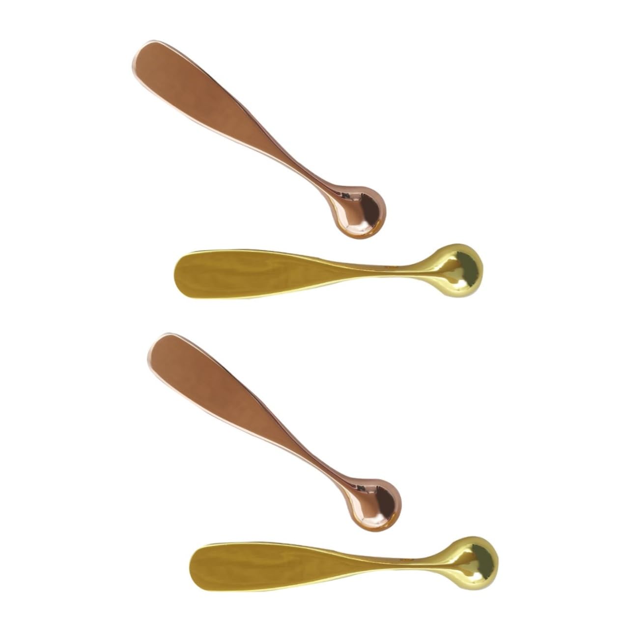 The package includes 4 x massage tools. Features: - Material: Zinc alloy eye cream massager. - Color: Gold massage bar. - Size: Approximately 5.8 x 1 x 1 cm. - Made from durable material for use as a skincare massage tool. - Unique design with two different ends: one end is a scoop for dispensing cream, while the other end is an eye massager, promoting eye cream absorption and reducing eye puffiness. - Mini design, portable, compact, and easy to use. - It can also be used as a metal mask spoon, a skin cream dividing spoon, and a cosmetics spoon. - Smooth surface, very easy to use. : This one-handed mask scooper can relieve eye fatigue, tighten the skin around the eyes, and reduce wrinkles. This facial massager has two different ends. One end of this eye massage tool is a spoon for dispensing cream, while the other end is a massage tool for the eyes.