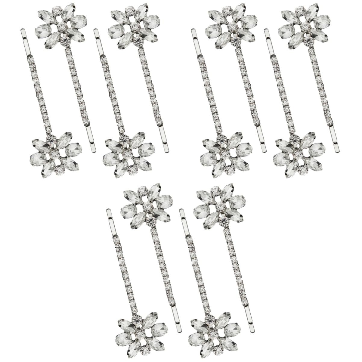 Package List 6 x pairs of Hairpins Characteristics -Color:Silver Women Headdress -Material:Rhinestones, Zinc Alloy hair accessories for girls -Size:7.00X2.00X1.00cm/2.75X0.79X0 hair clips for girls. -Easy to wear, very suitable for fixing loose hair and decorating hair perfectly Hair Accessory for Women. -The hair accessories suitable for various occasions, such as weddings, banquets, parties etc Rhinestones Flower Hair Pin. -Shiny and delicate rhinestones flower design, bright luster and excellent texture Rhinestones Hairpins. -You can give this exquisite hairpin to your girls, they will be very happy girls hair clips. -Fashion design will attract the attention of women and girls and win their love Rhinestones Hair Pin. Goods Description pearl clips for hair Creating a simple but different hairstyle as you like, make you look more elegant and charming.rhinestone headpiece Our hairpins can be applied for many occasions, you can wear it in your daily life to match your outfits or for joining some birthday or wedding parties