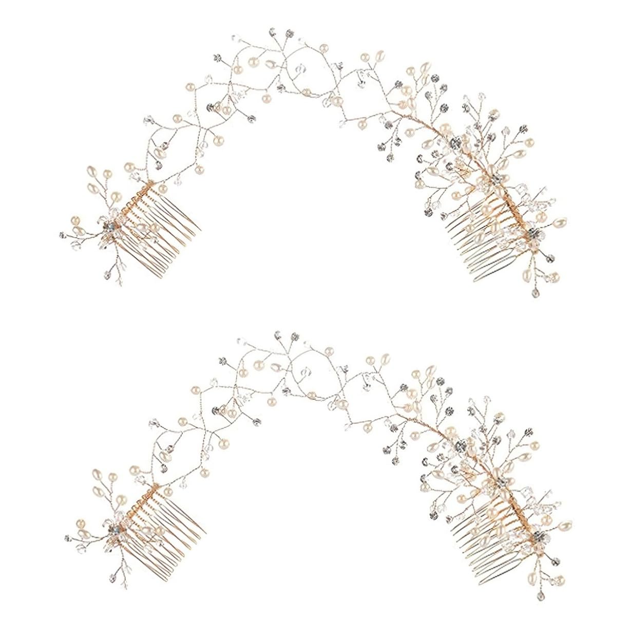 Package Include 2 x Wedding Hair Comb Features -Color:Golden bridal hair accessories -Material:Alloy decorative hair combs -Size:35.00X3.00X1.00cm/13.76X1.18X0 hair pieces for wedding. -Suitable for bride, bridesmaid, or women who is going to a wedding or prom bride hair piece. -Easily match well with your wedding dress, evening formal outfits, add more charm to your appearance rhinestone hair comb. -It can be a intimate choice for your female friends on bridal shower and other special days hair clips for wedding hairstyles. -Made with fine workmanship, not easy to rust, and crystal on hair piece is not easy to fall out hair combs for wedding. -There is comb on each side of the headpiece, comfortable to use, just insert it in your hair wedding hair accessories. Goods Description wedding accessories You can be send to to your friend as a bridal shower resent, she will like it a lot.Wedding hair accessories Its material is alloy, safe and reliable, comfortable to wear for a long time.hair bling Easily match with formal dress and costumes, eye-catching costume dress up accessory for bride.pearl hair piece Light weight and very nice looking