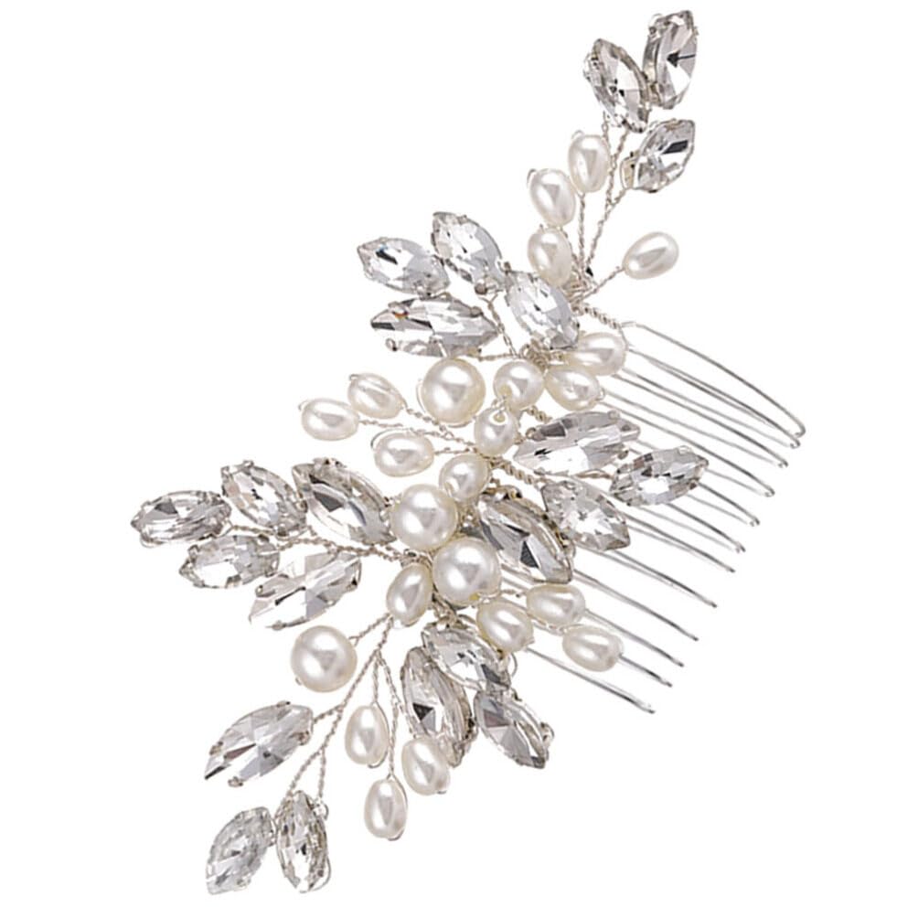 Description Introducing our exquisite bride hair comb, a perfect accessory for brides on their wedding day. With its minimalist and chic design, this hair comb a timeless elegance that will never go out of style. Crafted with utmost care, it is a stunning addition to any bridal ensemble. Features -Color:White. -Material:Metal; crystal; pearl -Size:12.00X6.00X0.80cm;4.72X2.36X0.31in - Easy to put on and create stunning hairstyles. A good choice for engagement or wedding jewelry. - Delicate hair comb with artificial crystal and pearl, give your hairstyle unique charm and elegance. - Perfect for wedding, evening party, banquet, Christmas, new year party, birthday and other special occasions. - Hair Comb can match well with different clothes and makeup, create a beautiful hairstyle easily and quickly. - This Bridal Hair Comb is easy and comfortable to wear, perfectly matches with your wedding dress. Package Including 1 x bridal hair comb