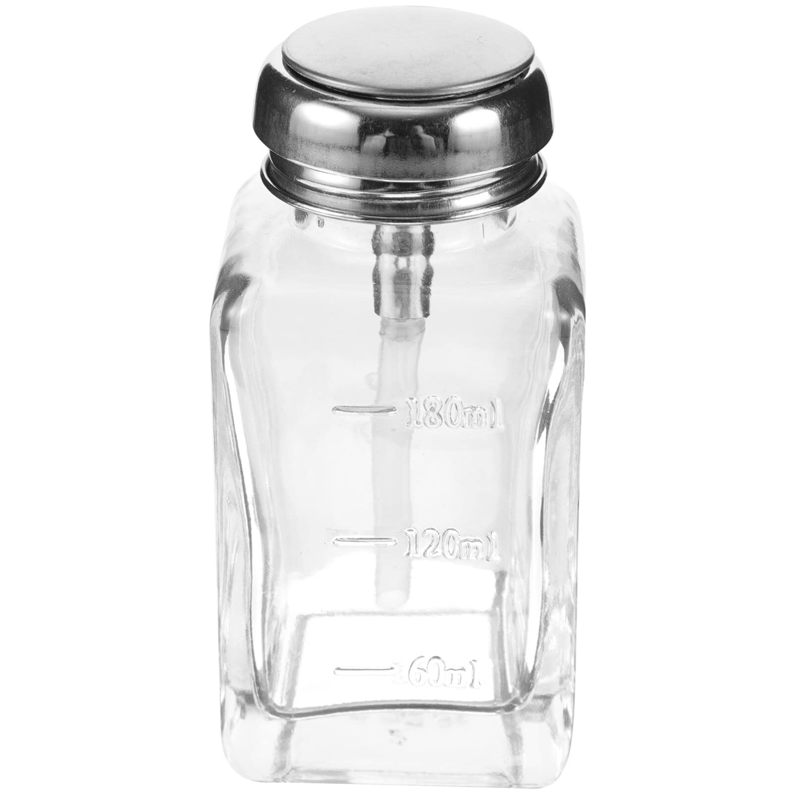 Beaupretty Clear Glass Push Down Dispenser Bottle for Nail Polish and Makeup Remover 180ML Empty One Touch Glass Pump Dispenser with Flip Top Cap