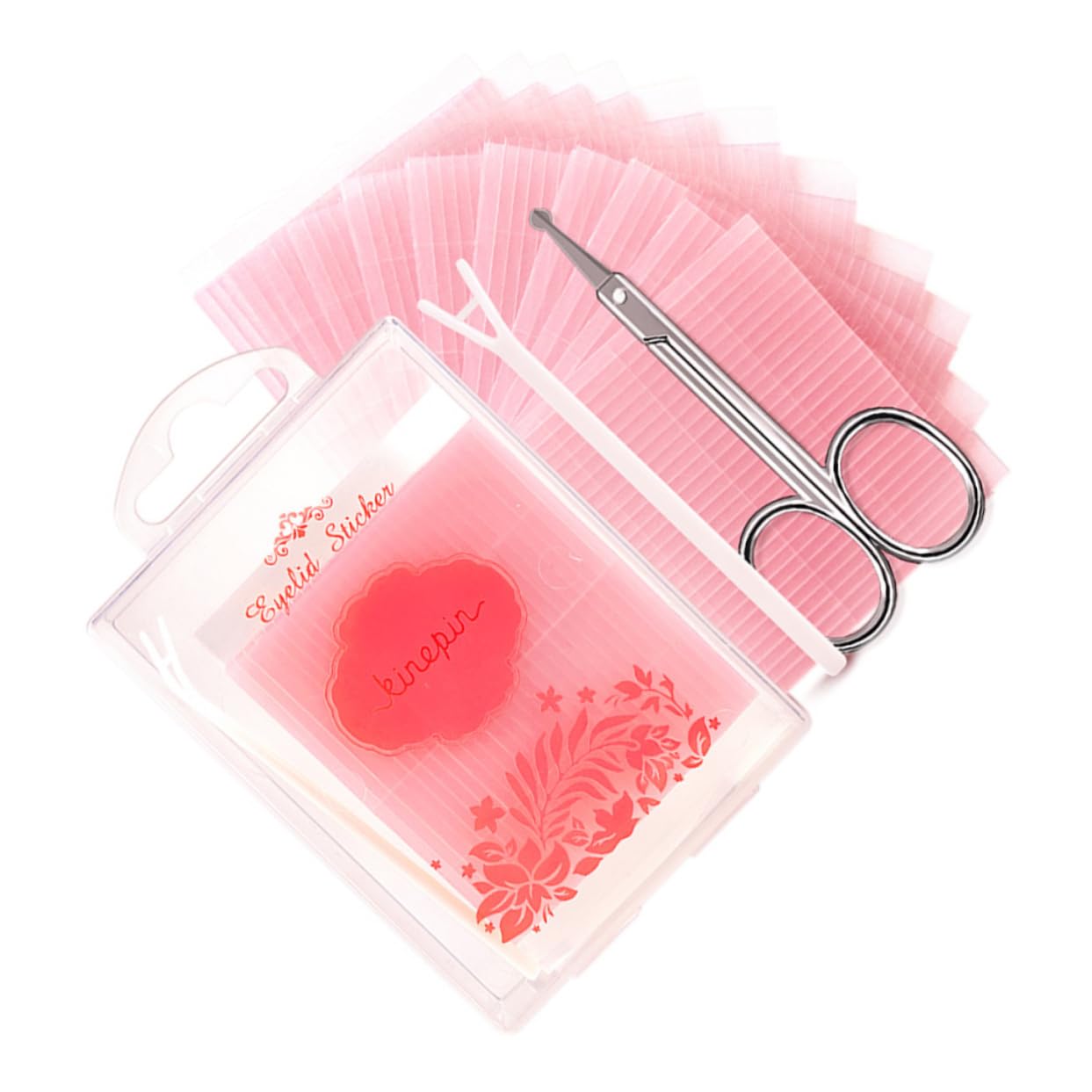 Package List 572 x sticker 1 x round head scissors 1 x bar 1 x storage box Characteristics - Color: Transparent double eyelid tape. - Material: