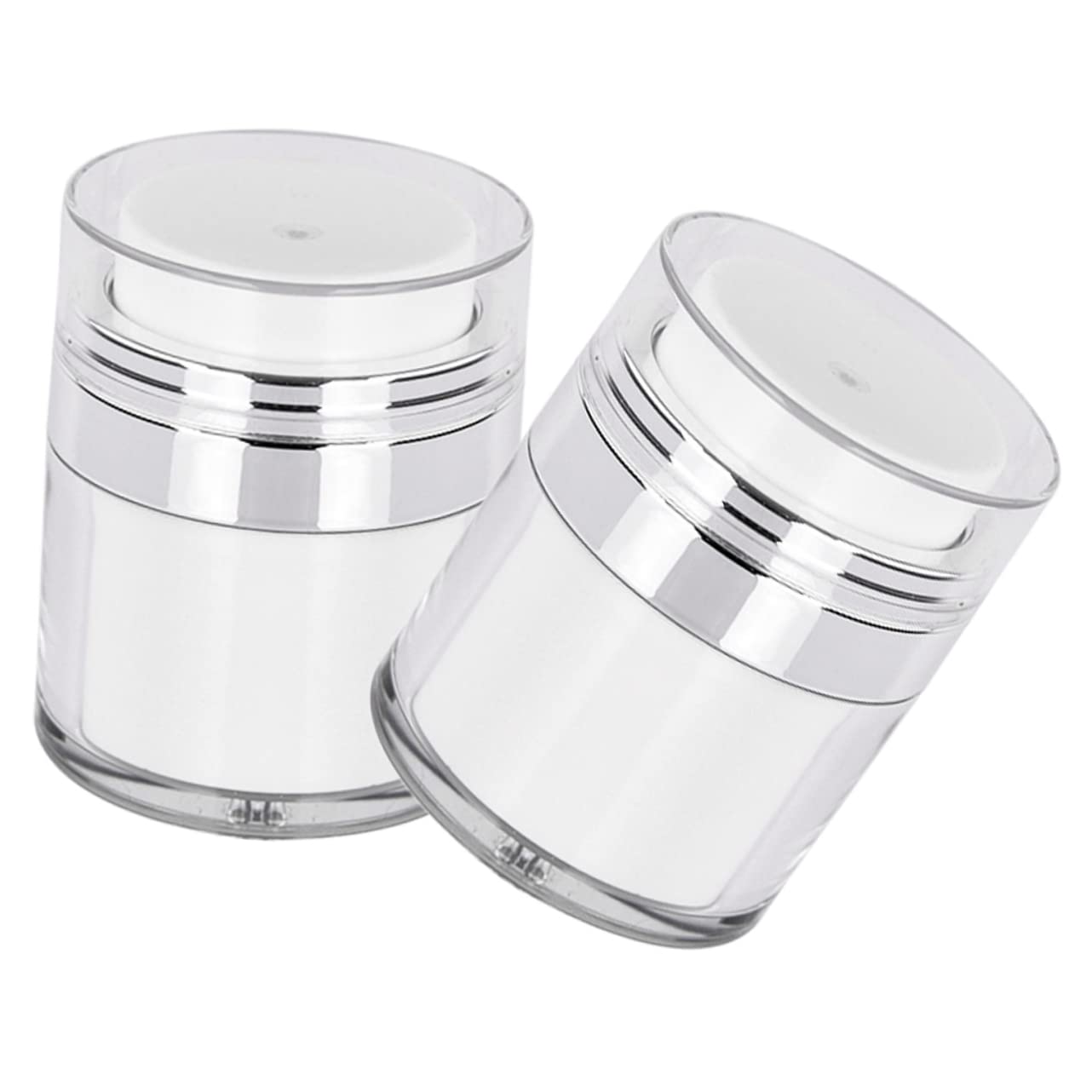 Airless pump jar: easy to use: the face cream vacuum bottle allows you to carry it easily, and the cream vacuum pump bottle is designed without a straw, and it can be with a single touch. Portable travel airless pump jar: fine workmanship ensures the service life and reliable storage effect, practical to use. Empty refillable cosmetic jar: suitable for a variety of cosmetics: easy to apply daily makeup, face cream, hand cream and more. high transparency, not easy to break, beautiful and delicate. Body butter jars: refillable cream jars the appropriate size is packing cosmetics in your toiletry case or bag without having to carry the whole bottle. Pump jars: travel lotions container is storing lotions, creams, lip balms, toners,powder, and other beauty .