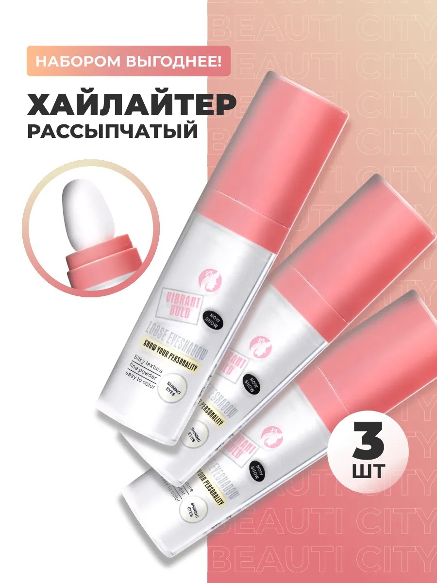BeautiCity Хайлайтер для лица и тела сухой с блестками рассыпчатый 3 шт