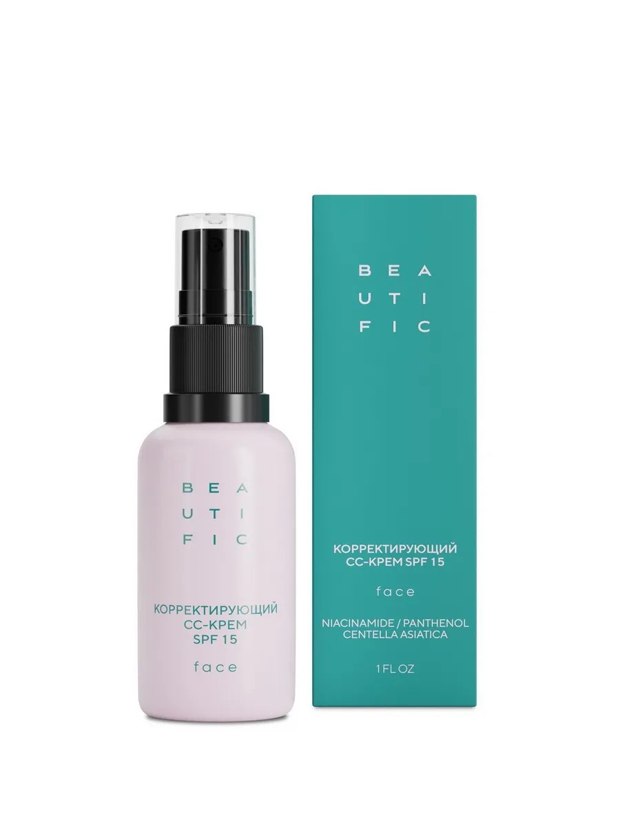 Средство создаст не только визуальный тонирующий эффект, но и позаботится о восстановлении кожи. Пантенол и аллантоин глубоко увлажнят и помогут поддерживать ее водный баланс. Увлажняющий крем с этими компонентами незаменим в уходе за кожей, склонной к сухости. Ниацинамид поможет создать однородный и естественный тон для лица за счет мягкого осветляющего действия. Экстракт центеллы азиатской успокоит воспаления и раздражения, ускорит регенерацию кожи при постакне. CC-крем для лица с спф 15 защитит кожу от негативного влияния ультрафиолета и фотостарения. Солнцезащитная косметика важна в любой сезон для всех типов кожи, чтобы продлить ее молодость, помочь ей дольше оставаться молодой, сияющей и свежей. СС-крем от BEAUTIFIC дополнит основной дневной крем с spf-защитой, усилив этот эффект. Корректирующий крем от BEAUTIFIC естественно сливается с кожей, не создавая эффекта маски, подходит для любого типа: нормального, сухого, комбинированного или жирного. Увлажнение, защита от солнца и восстановление - главные эффекты средства.