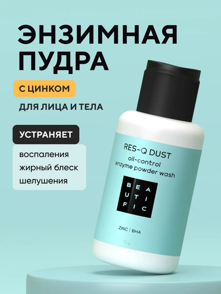 BEAUTIFIC Res-Q Dust Энзимная пудра для жирной и комбинированной кожи быстро и эффективно избавляет от несовершенств, придает коже красоту и здоровое сияние. Благодаря энзимам, неагрессивным ферментам, которые стимулируют и ускоряют все обменные процессы, средство обеспечивает очищение, мягкий пилинг и отшелушивание. Не вызывает стянутости и сухости.