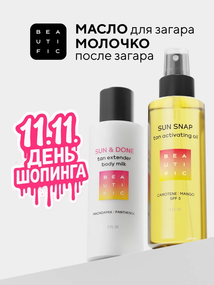 | Полное наименование товара | BEAUTIFIC Масло для загара Sun Snap 150мл+Sun and Done увлажняющее молочко-прологатор загара 150мл |