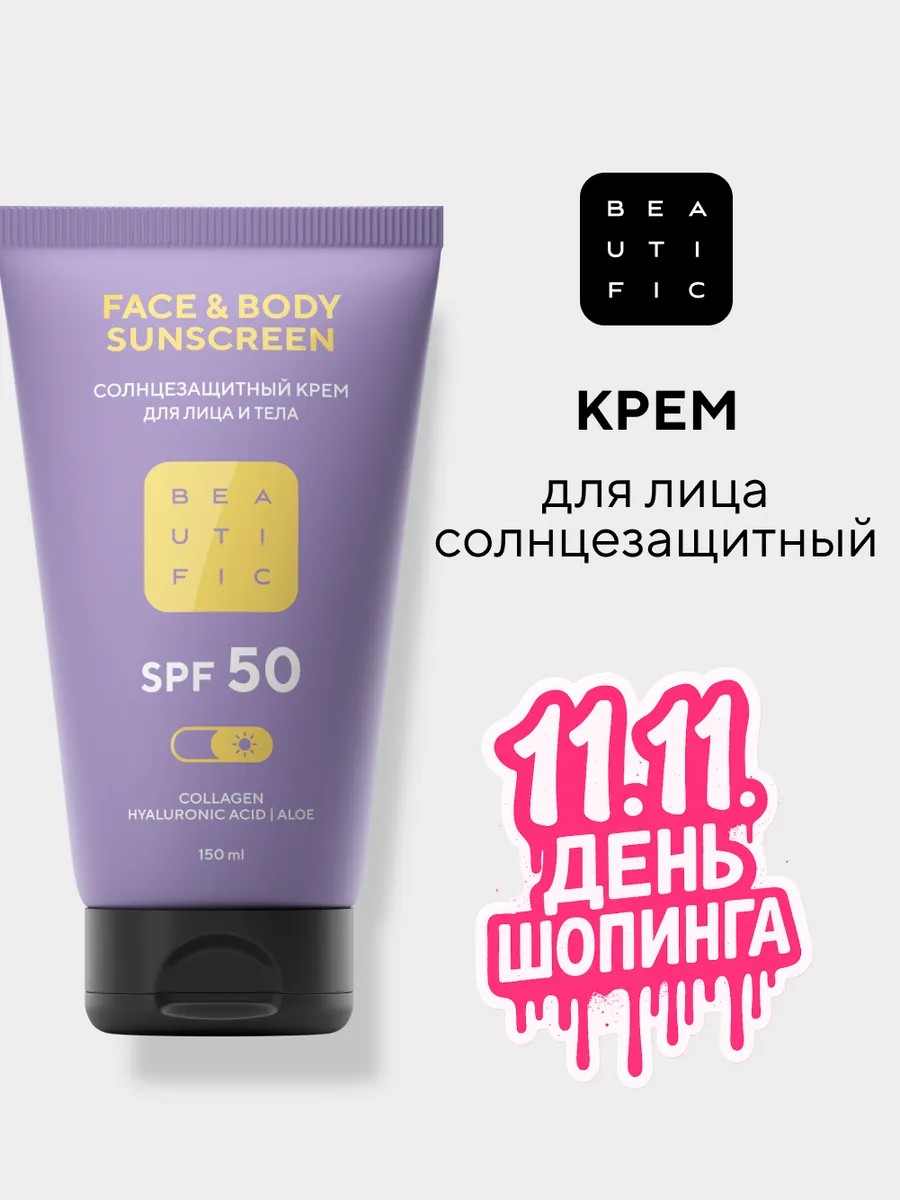 | Полное наименование товара | BEAUTIFIC Солнцезащитный крем для лица и тела с SPF 50, 150 мл |