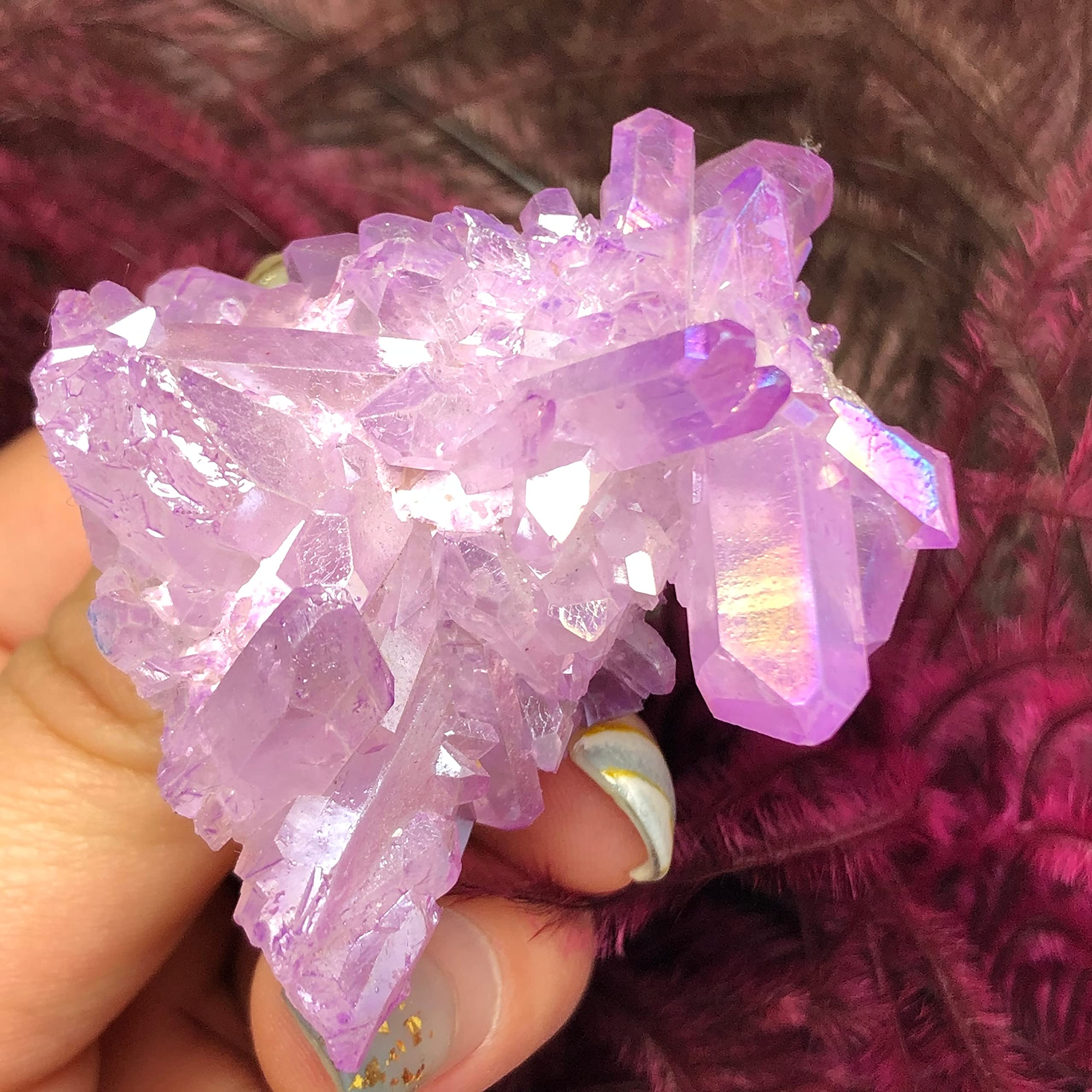 Beautiful Aura Crystal Cluster Angel Aura Titanium Quartz Crystal Specimen Minerals Decorative Home Collections